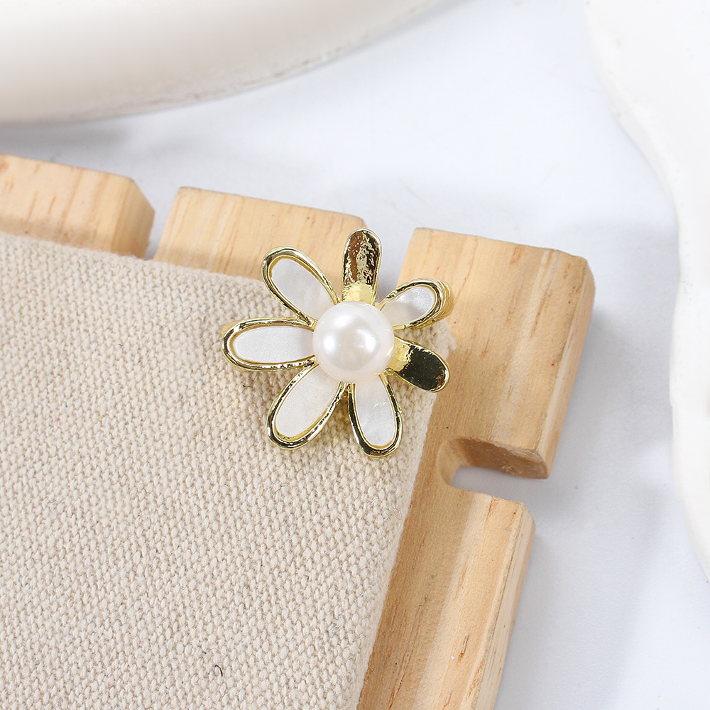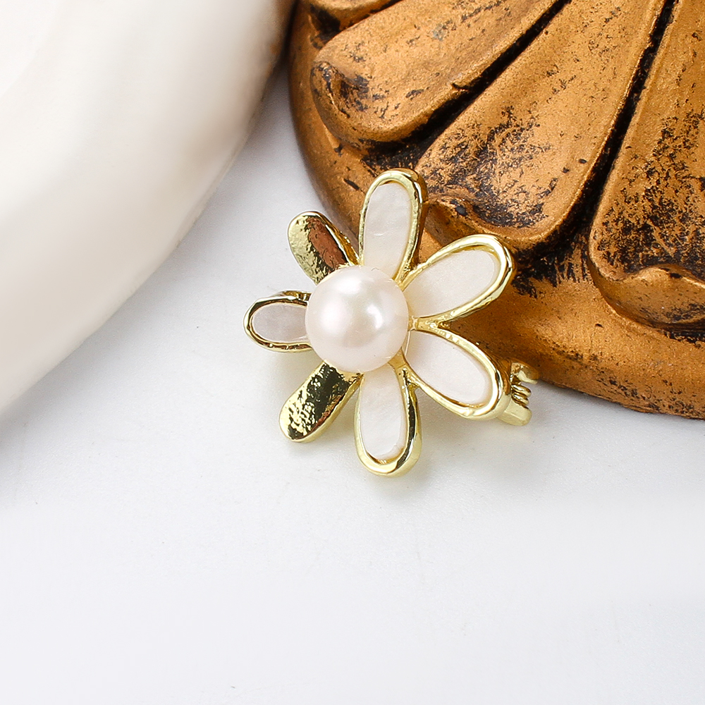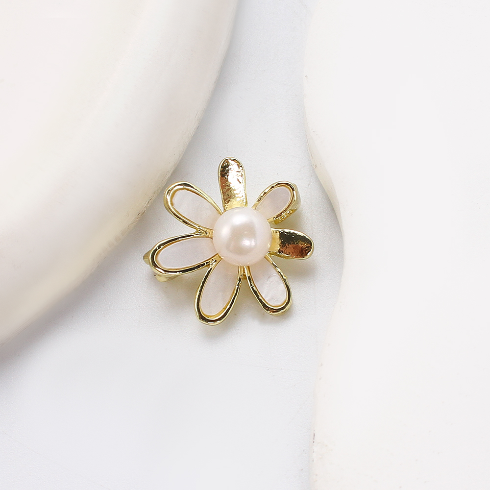 Broche perle d'eau douce, alliage de zinc, avec coquille blanche & perle d'eau douce cultivée, Placage de couleur d'or, bijoux de mode, plus de couleurs à choisir, 22.28x11.22x21.22mm, Vendu par PC