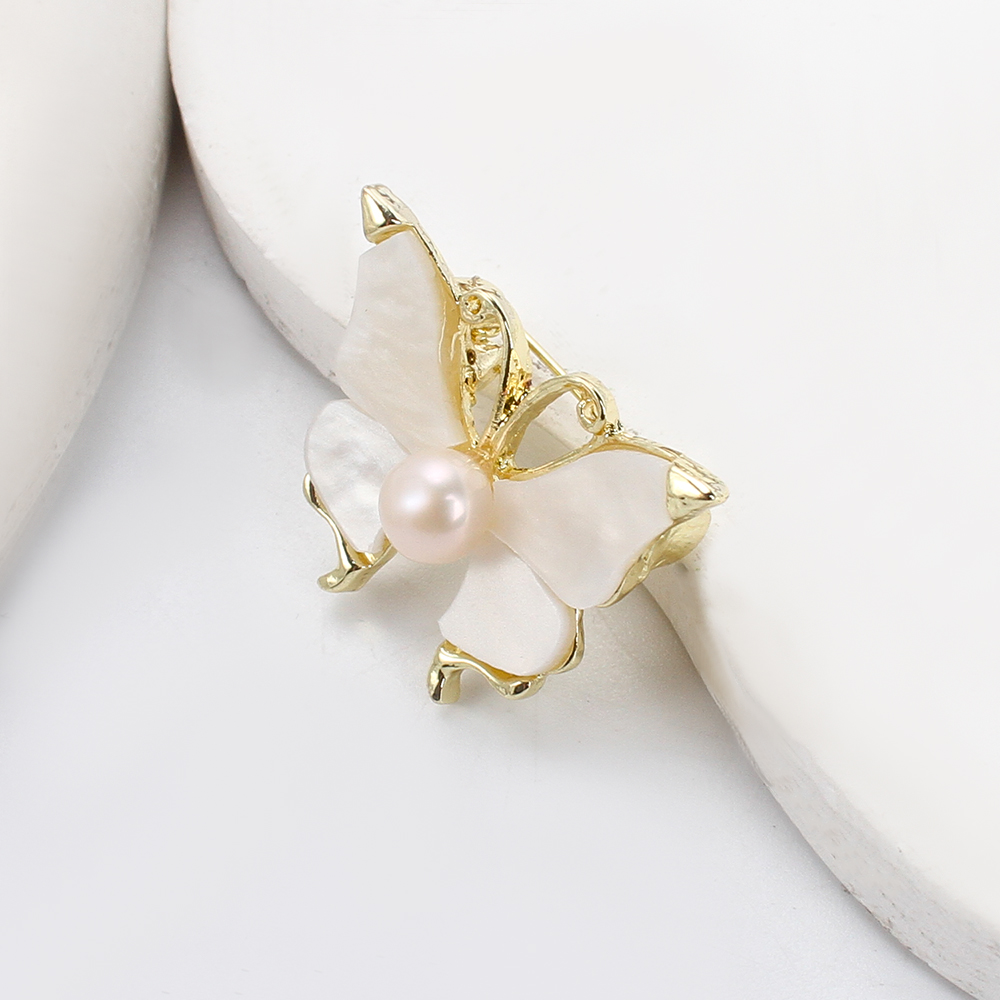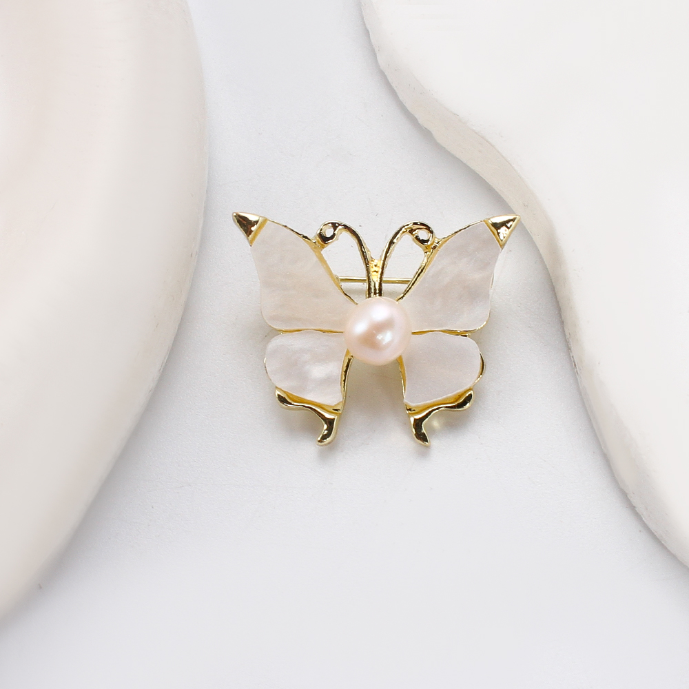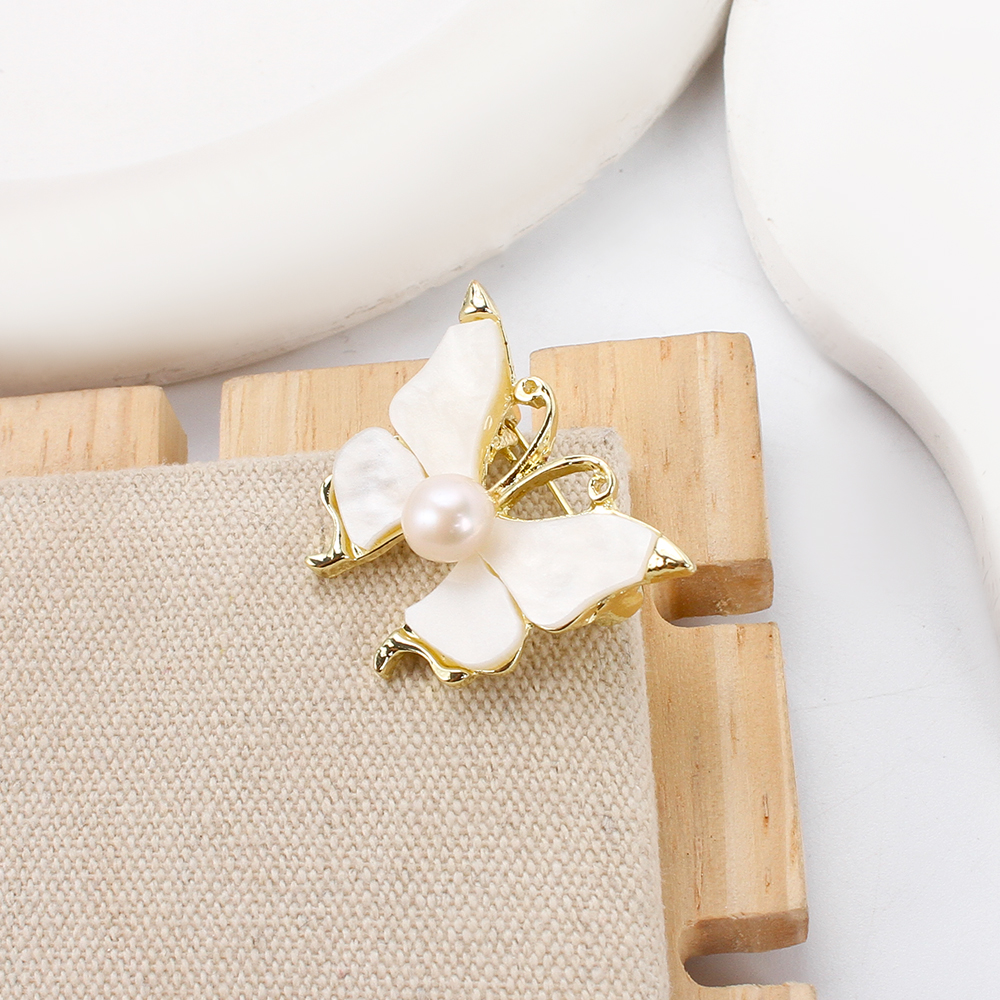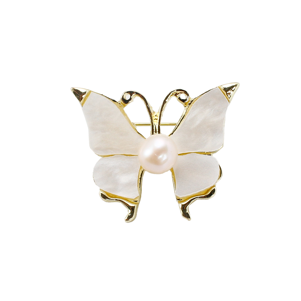 Broche perle d'eau douce, alliage de zinc, avec coquille blanche & perle d'eau douce cultivée, papillon, Placage de couleur d'or, bijoux de mode, plus de couleurs à choisir, 28.44x8.76x22.88mm, Vendu par PC