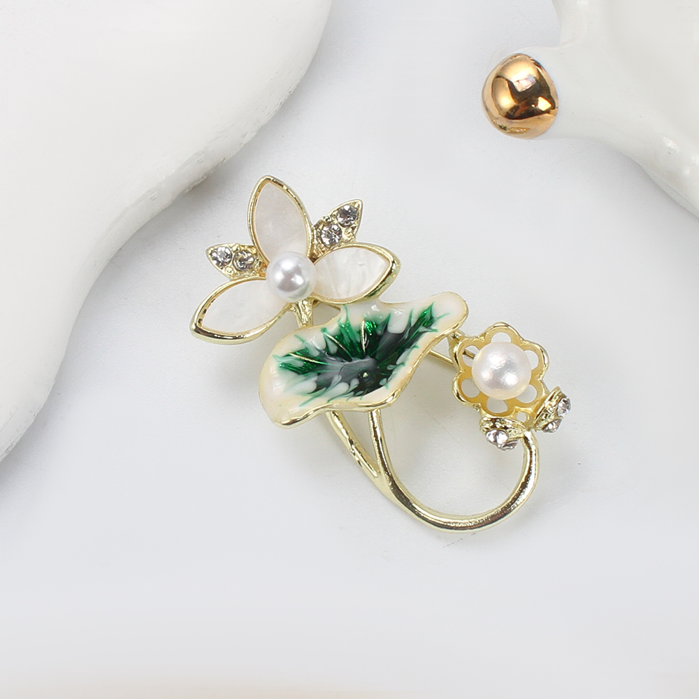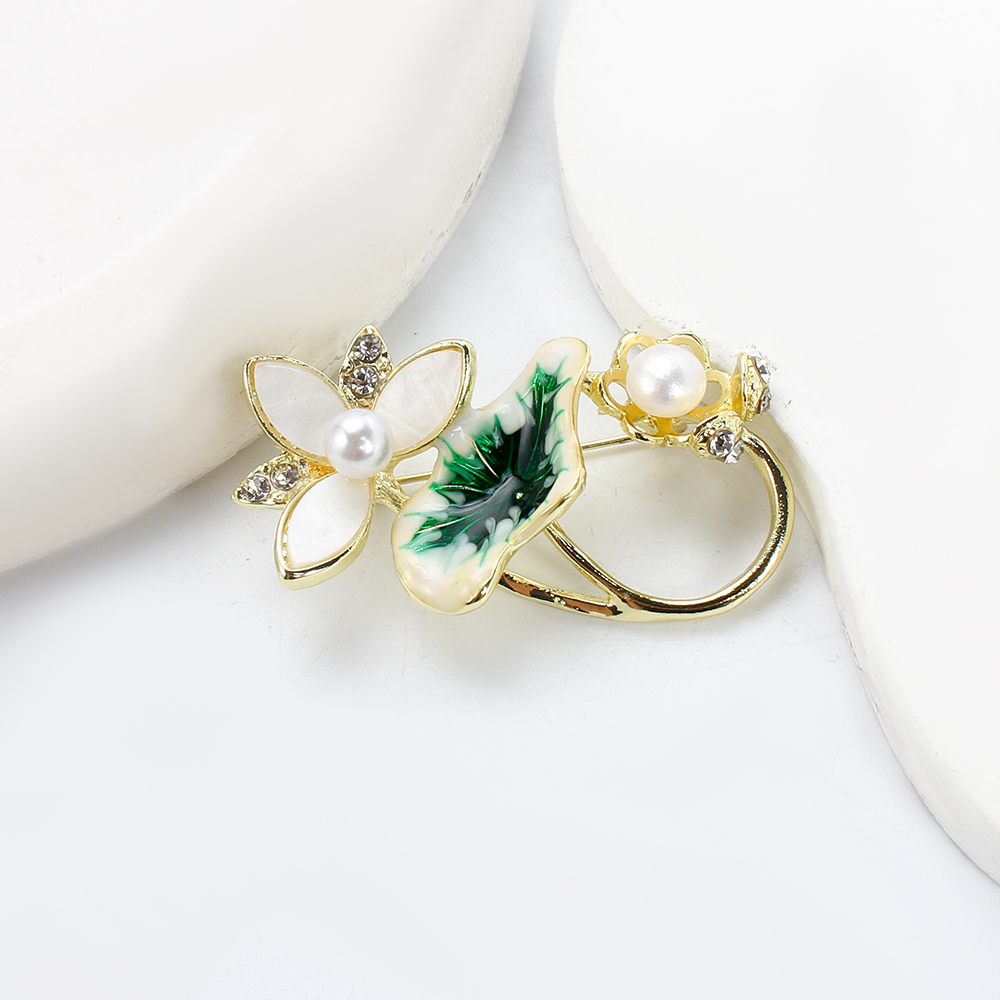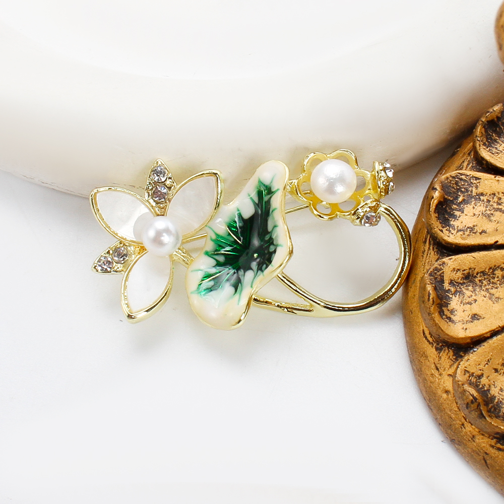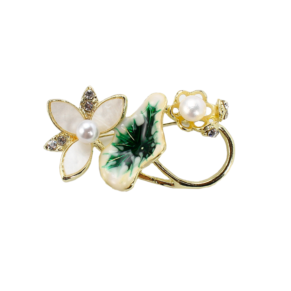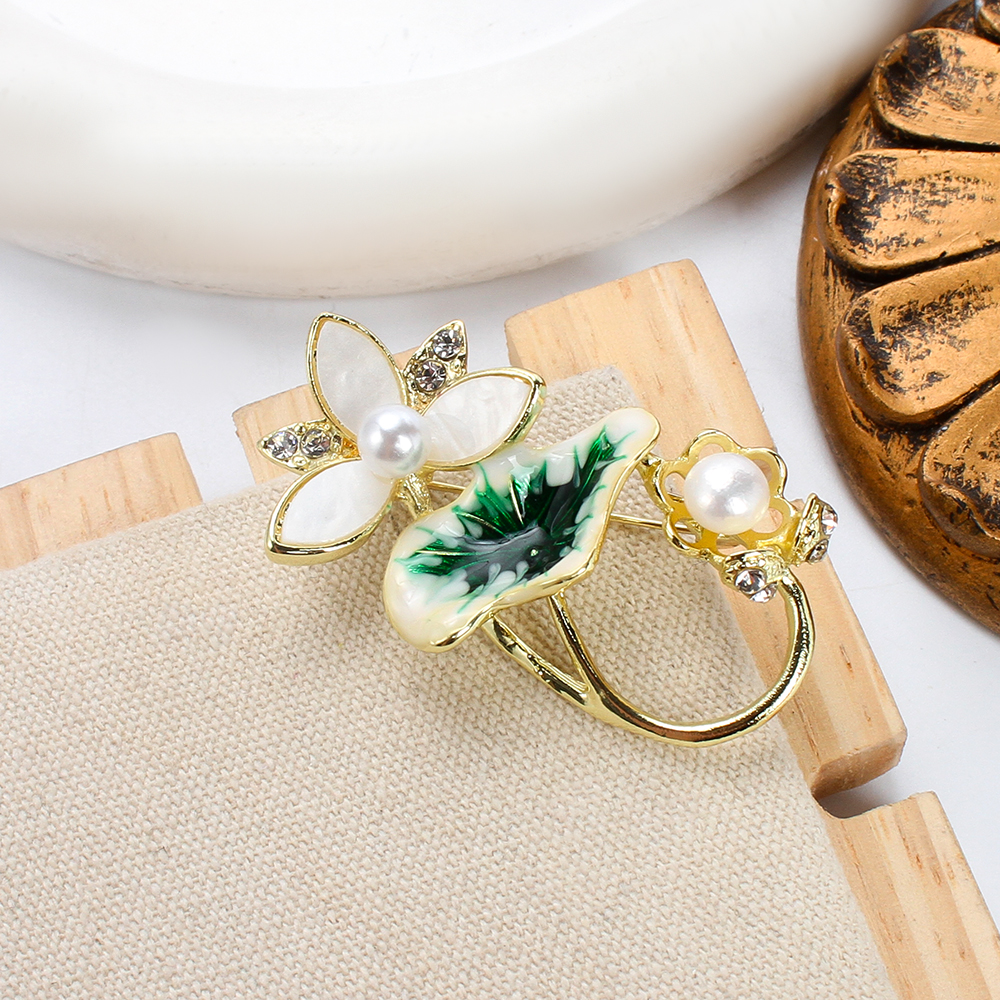 Broche perle d'eau douce, alliage de zinc, avec coquille blanche & perle d'eau douce cultivée, Placage de couleur d'or, bijoux de mode & émail & avec strass, plus de couleurs à choisir, 46.47x15.24x27.80mm, Vendu par PC