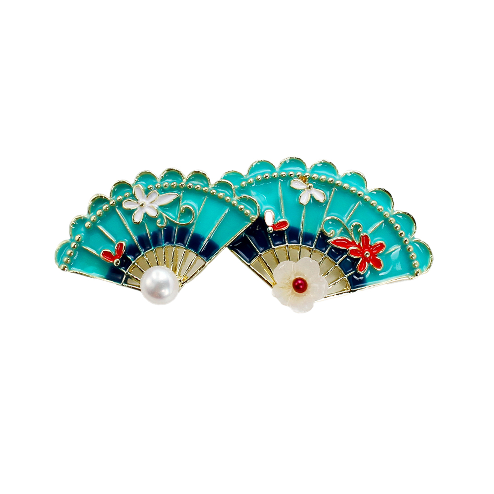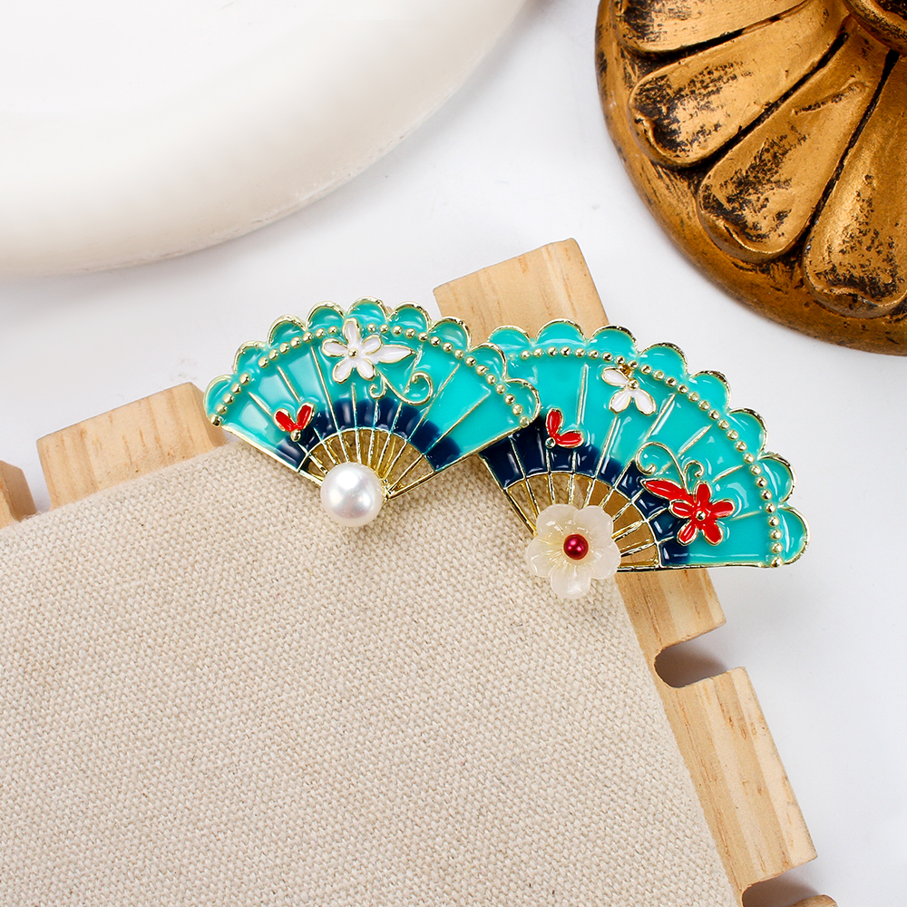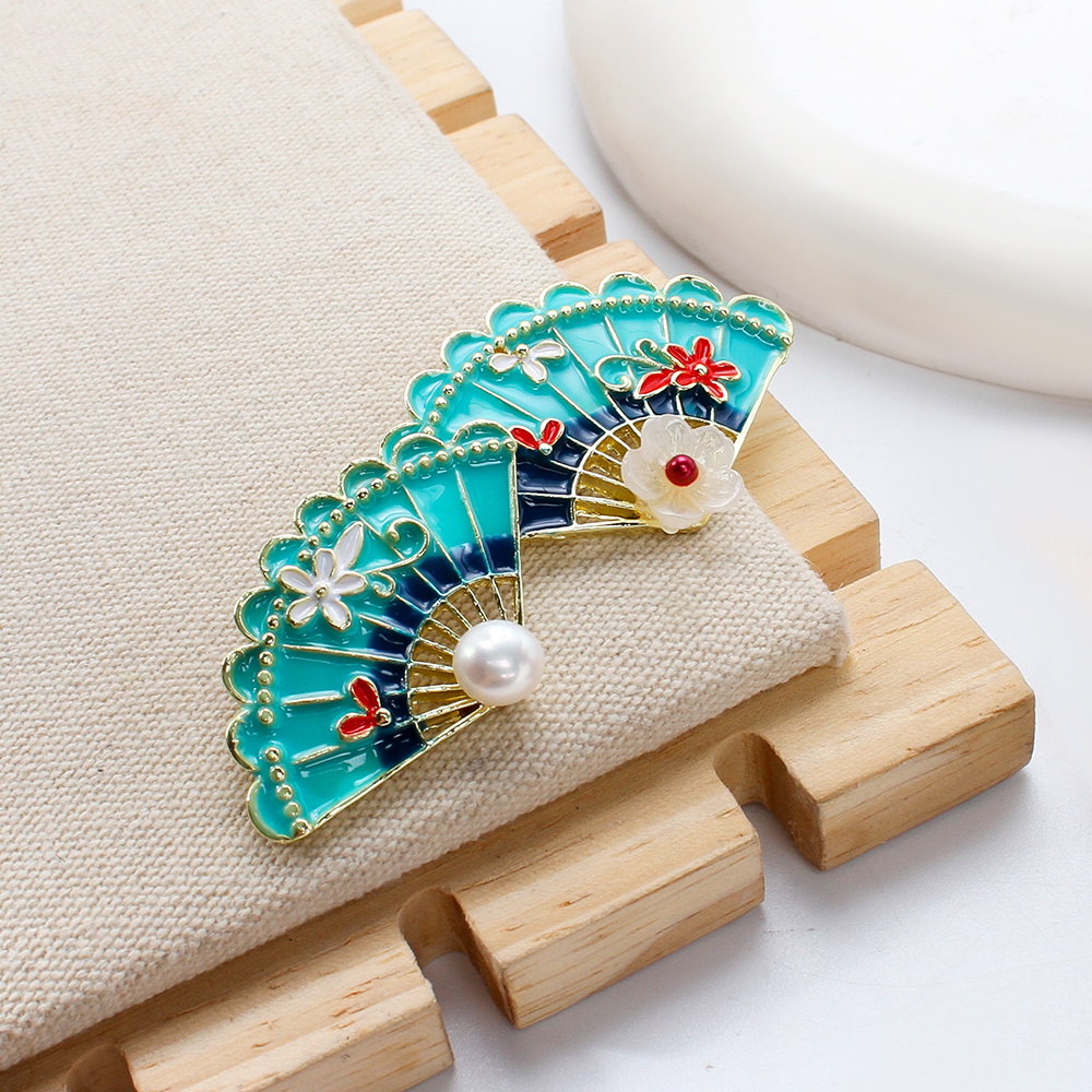 Broche perle d'eau douce, alliage de zinc, avec perle d'eau douce cultivée & résine, éventail, Placage de couleur d'or, bijoux de mode & émail, plus de couleurs à choisir, 67.98x10.01x28.97mm, Vendu par PC