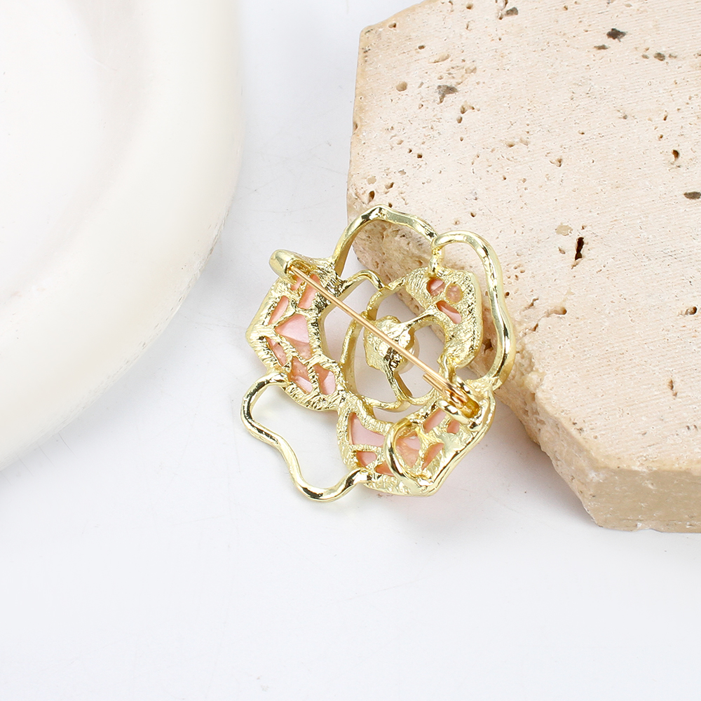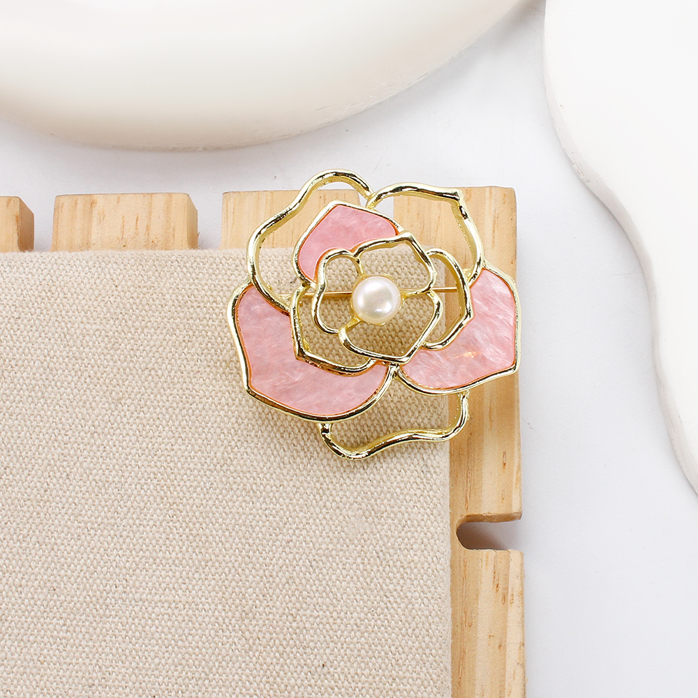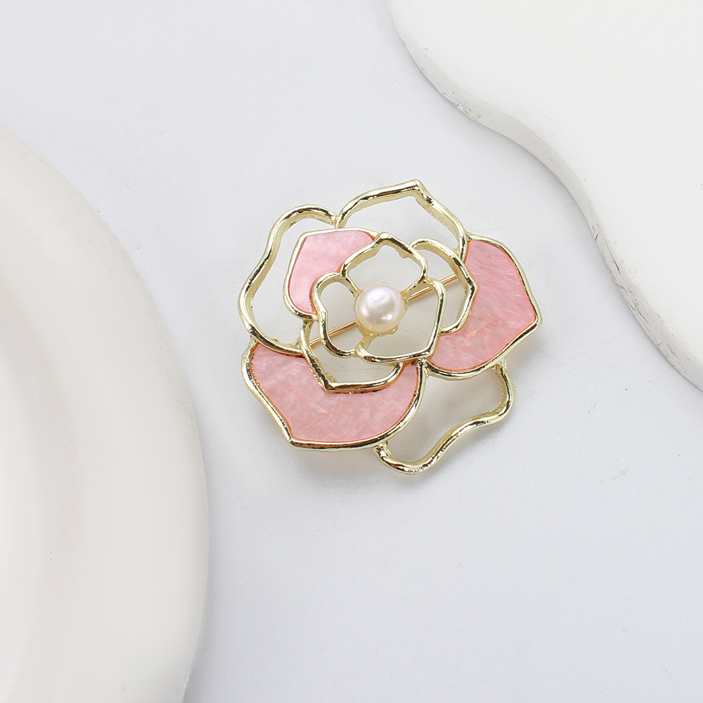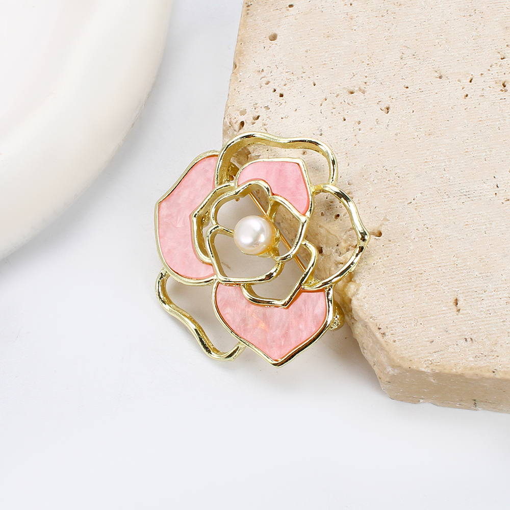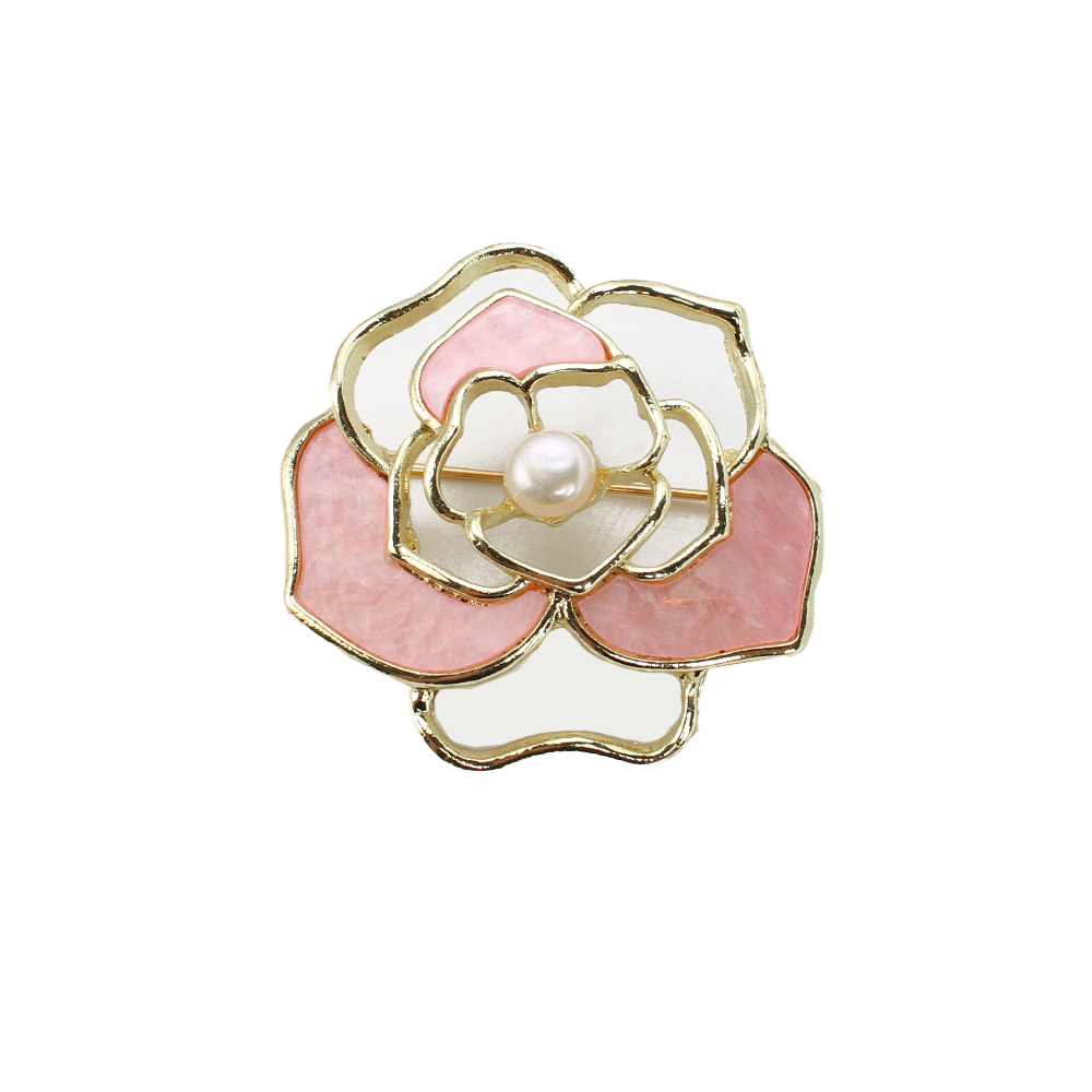 Broche perle d'eau douce, alliage de zinc, avec coquille rose & perle d'eau douce cultivée, fleur, Placage de couleur d'or, bijoux de mode, plus de couleurs à choisir, 40.42x12.73x39.32mm, Vendu par PC