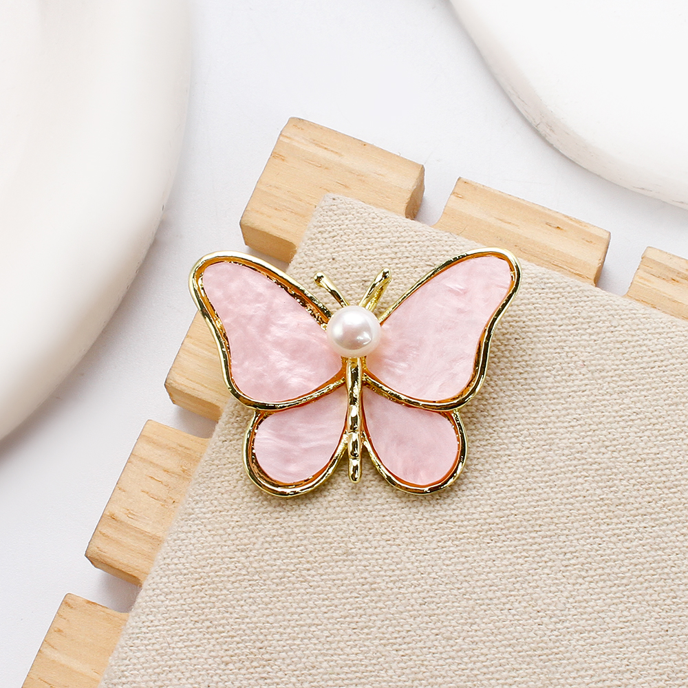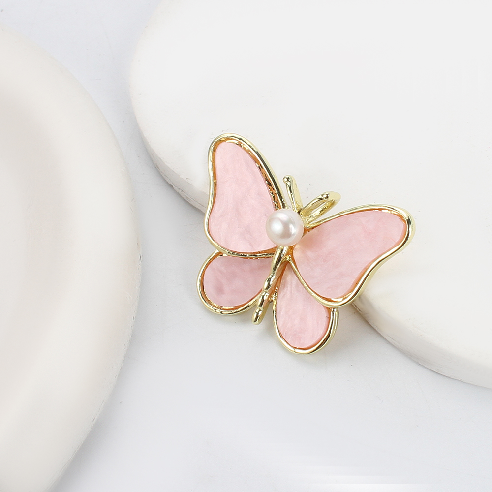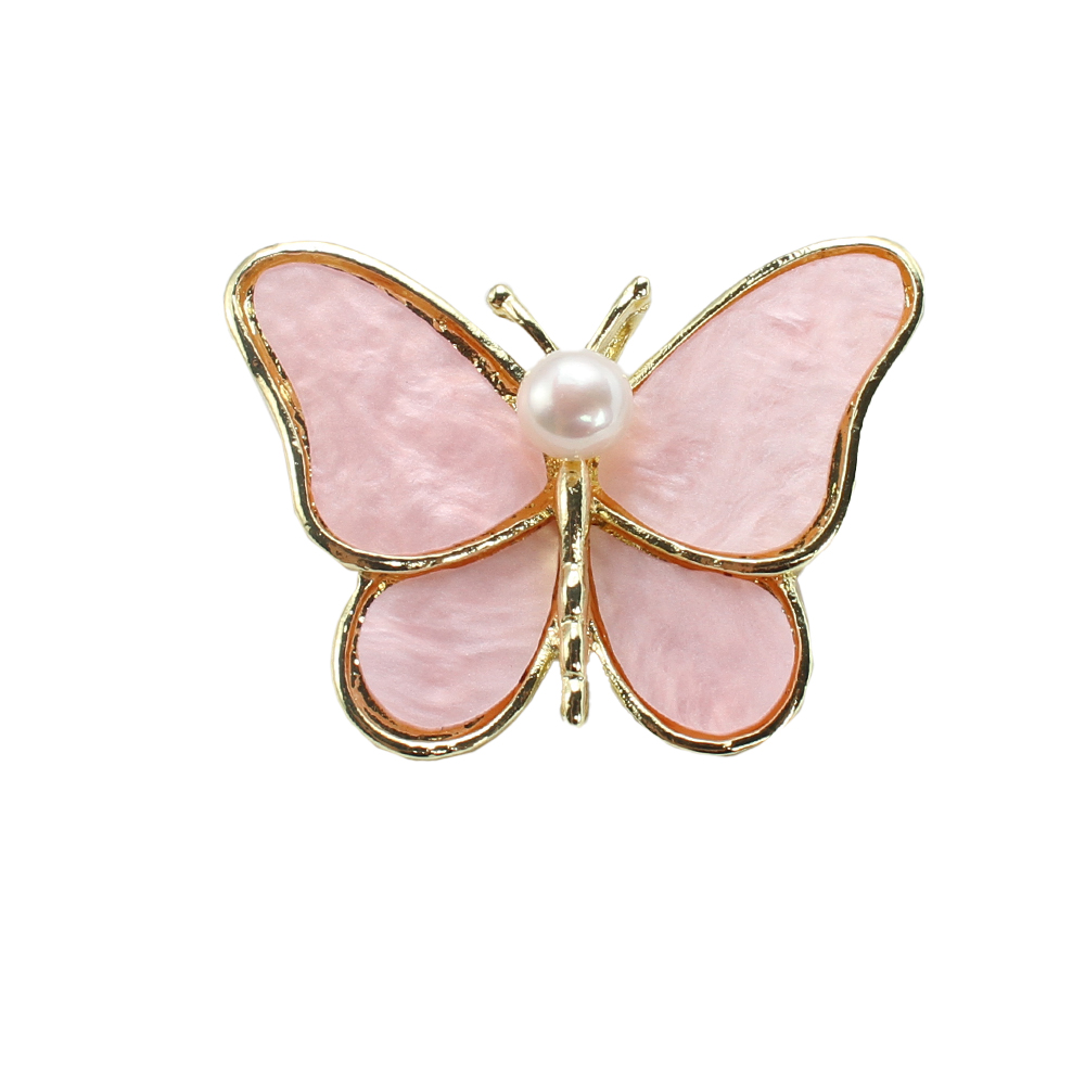 Broche perle d'eau douce, alliage de zinc, avec coquille rose & perle d'eau douce cultivée, papillon, Placage de couleur d'or, bijoux de mode, plus de couleurs à choisir, 41.85x13.92x30.20mm, Vendu par PC