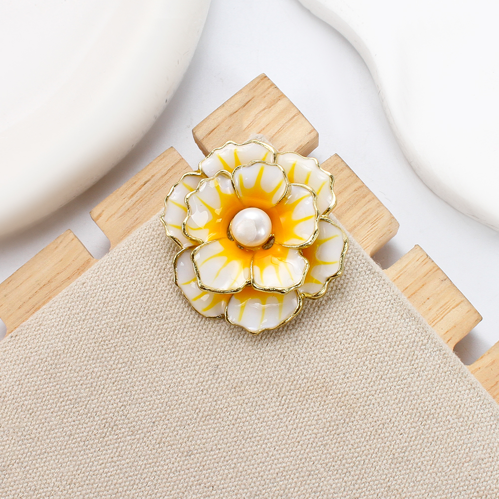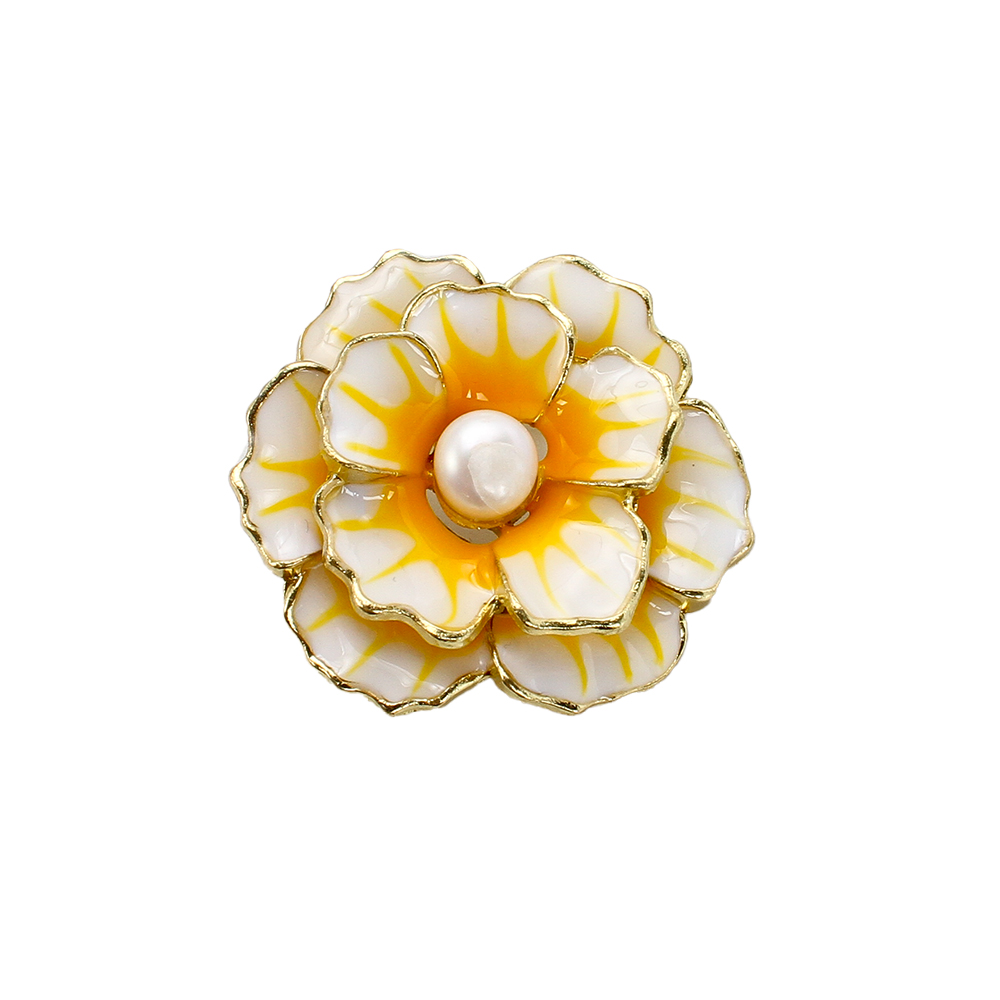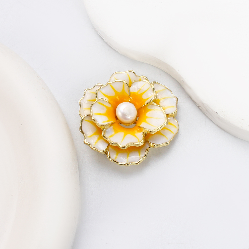 Broche perle d'eau douce, alliage de zinc, avec perle d'eau douce cultivée, fleur, Placage de couleur d'or, bijoux de mode & émail, plus de couleurs à choisir, 36.89x14.23x35.92mm, Vendu par PC