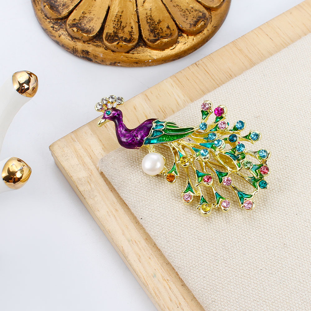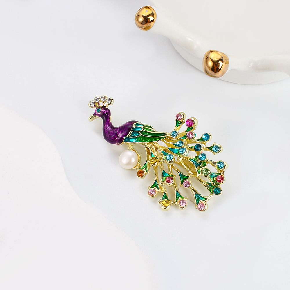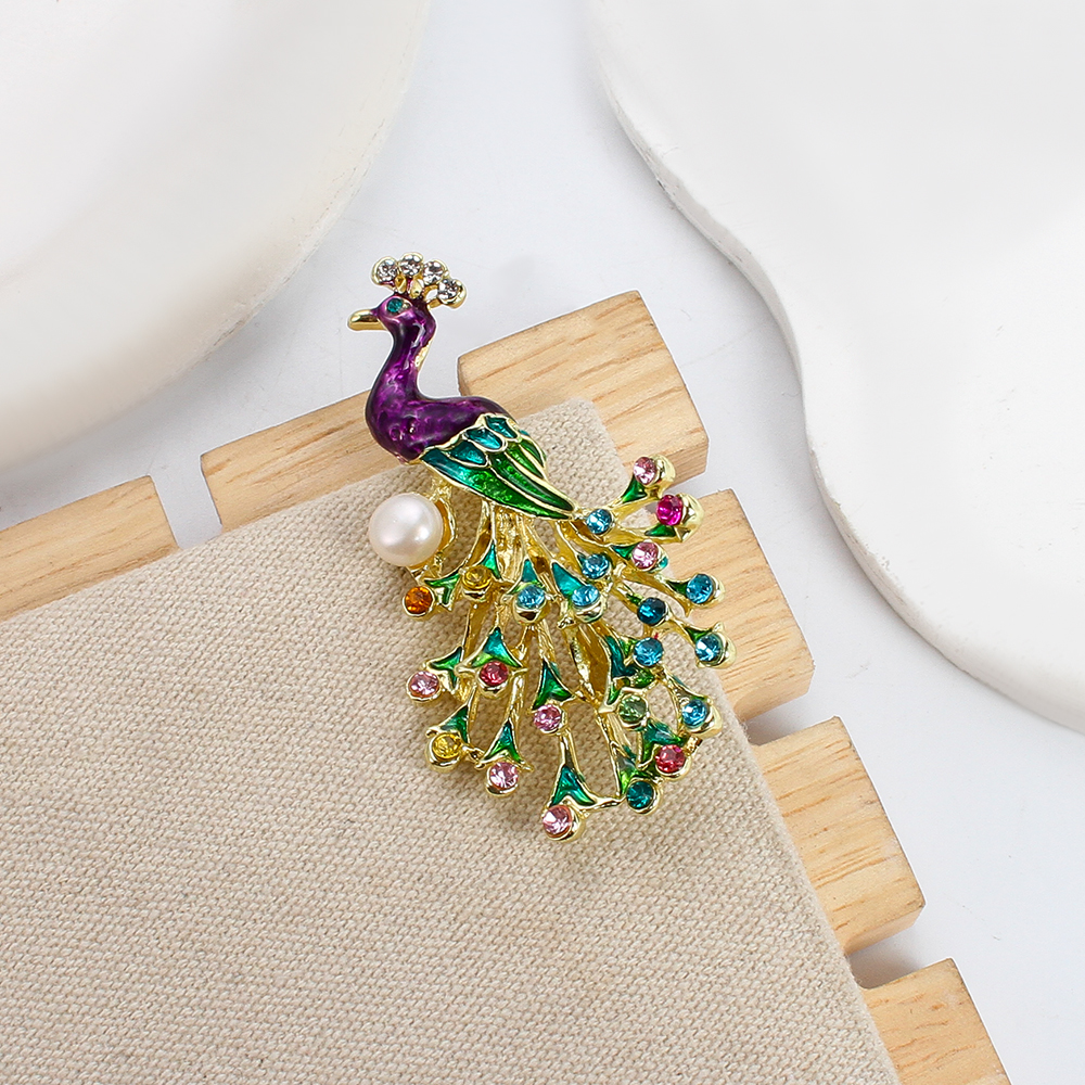 Broche perle d'eau douce, alliage de zinc, avec perle d'eau douce cultivée, paon, Placage de couleur d'or, bijoux de mode & émail & avec strass, plus de couleurs à choisir, 59.41x10.64x30.73mm, Vendu par PC