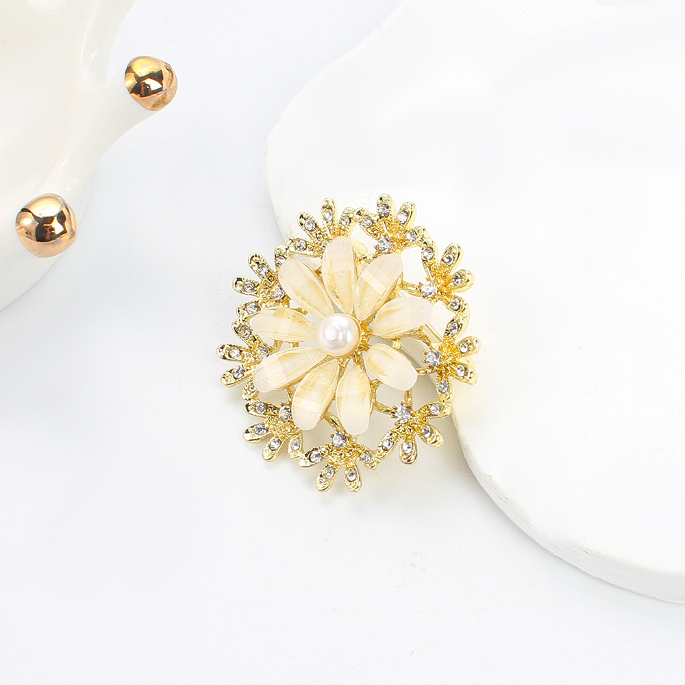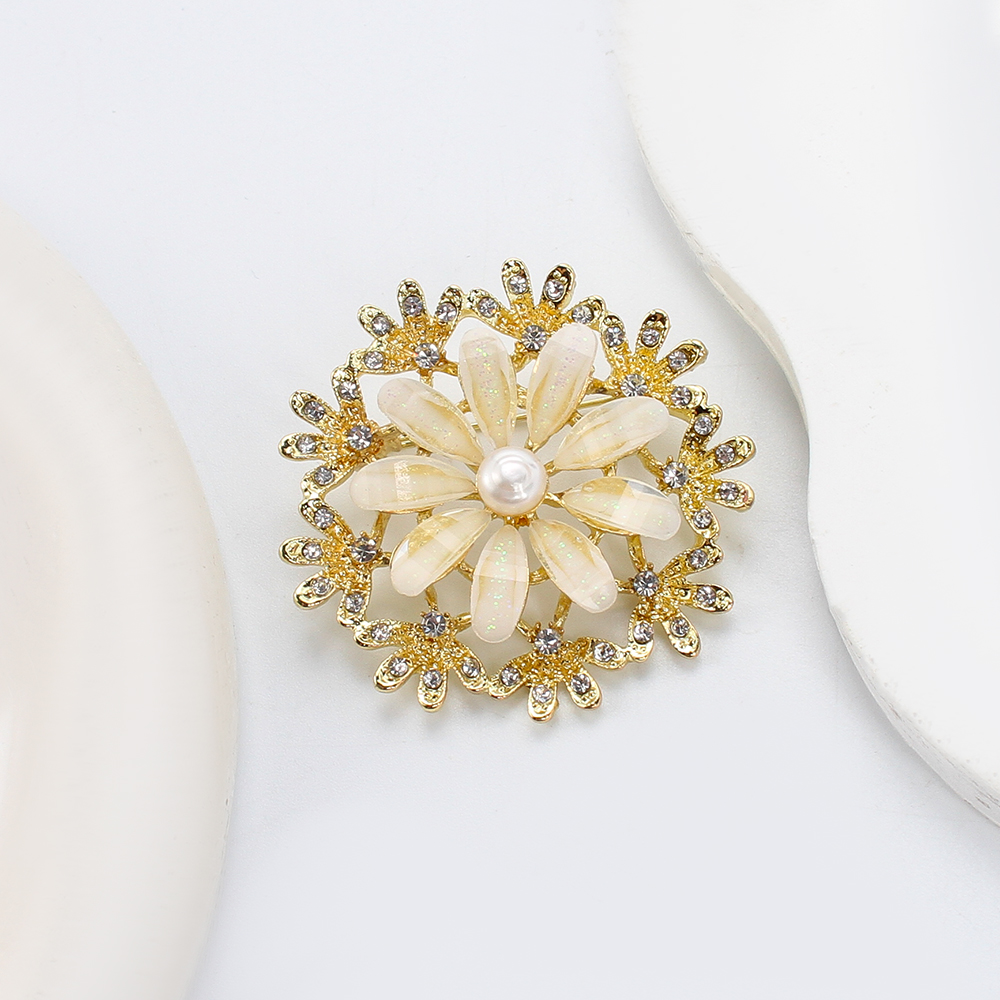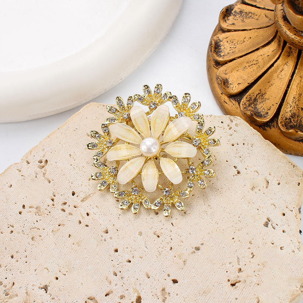 Broche perle d'eau douce, alliage de zinc, avec perle d'eau douce cultivée, fleur, Placage de couleur d'or, bijoux de mode & émail & avec strass, plus de couleurs à choisir, 45.22x14.12x43.75mm, Vendu par PC