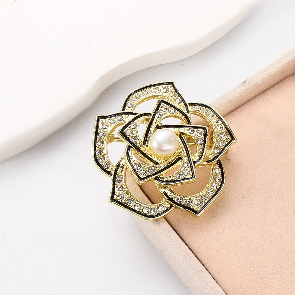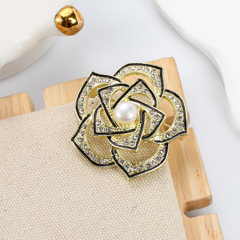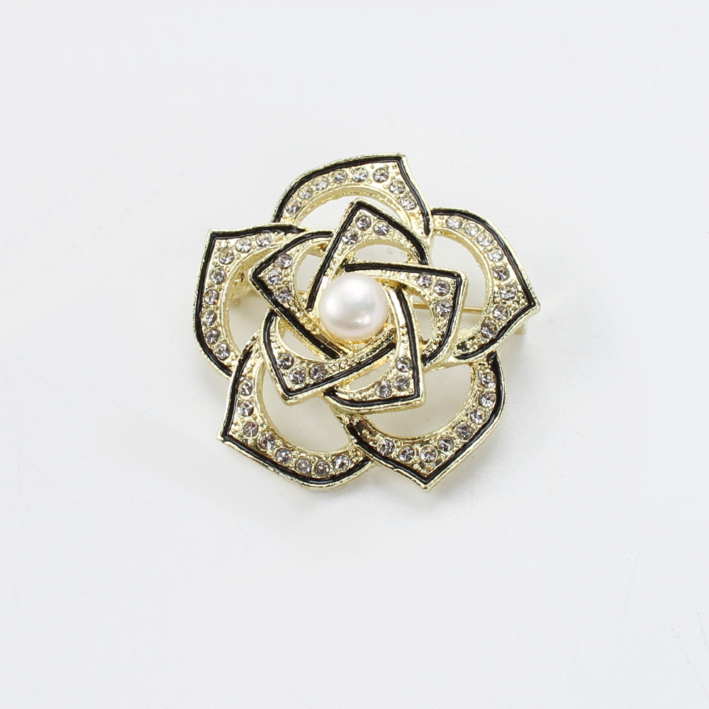 Broche perle d'eau douce, alliage de zinc, avec perle d'eau douce cultivée, fleur, Placage de couleur d'or, bijoux de mode & émail & avec strass, plus de couleurs à choisir, 32.24x11.73x34.58mm, Vendu par PC