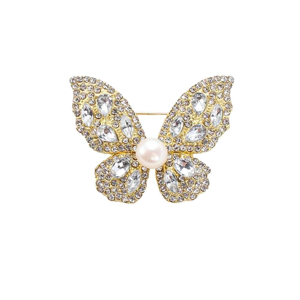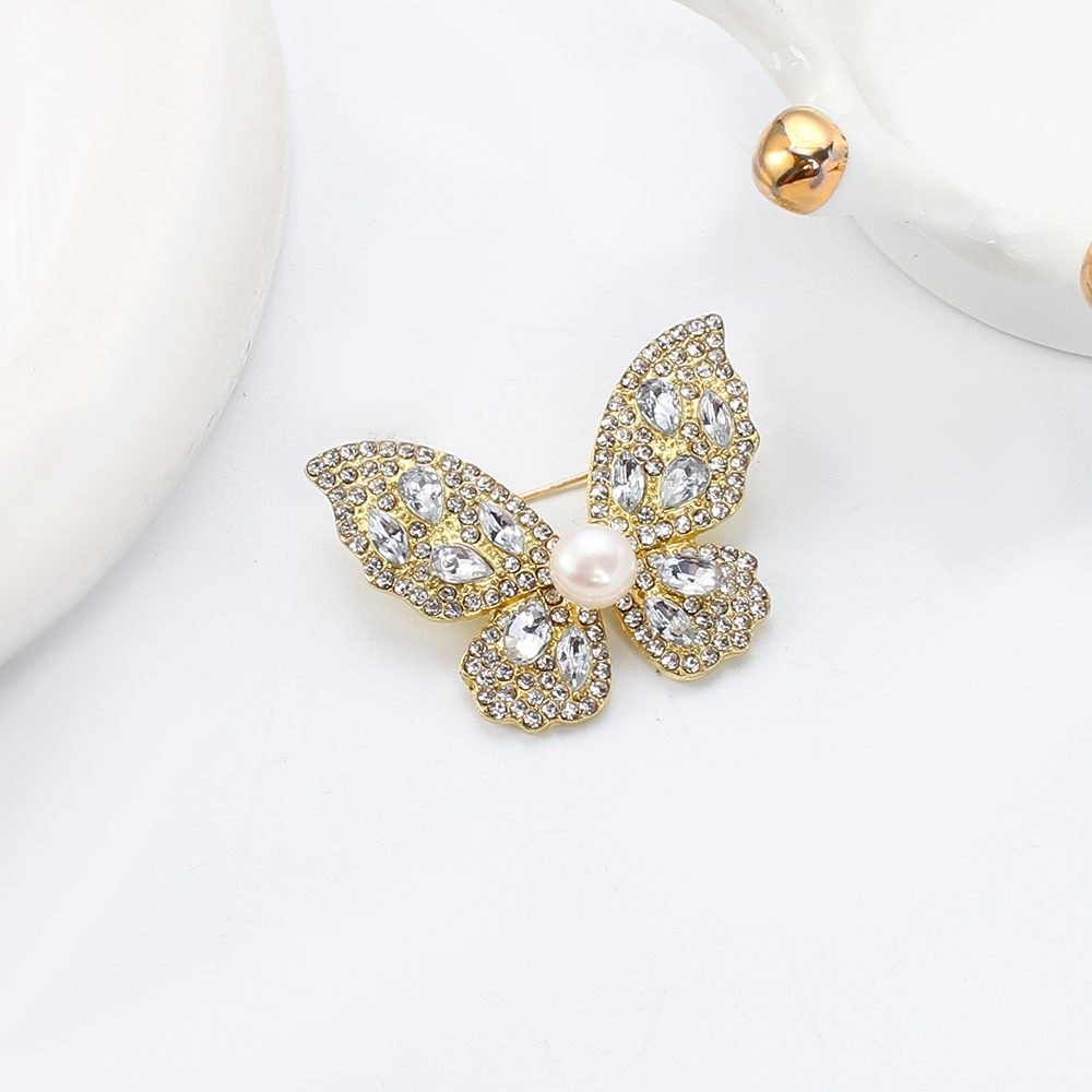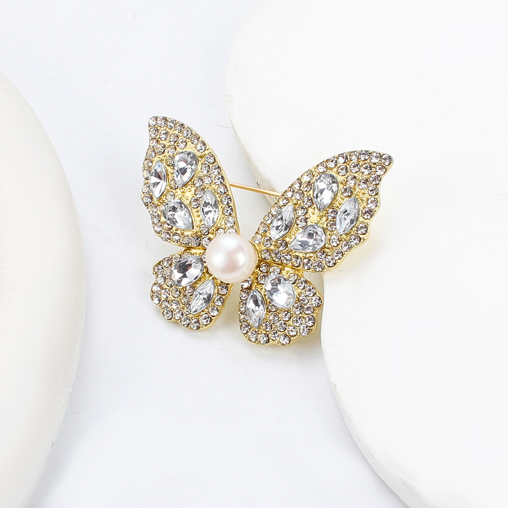 Broche perle d'eau douce, alliage de zinc, avec perle d'eau douce cultivée, papillon, Placage de couleur d'or, bijoux de mode & avec strass, plus de couleurs à choisir, 40.53x10.07x31.04mm, Vendu par PC