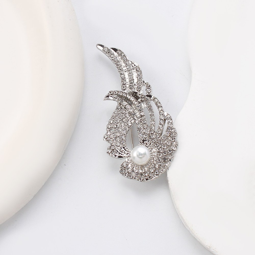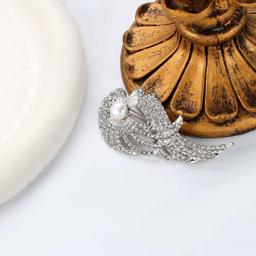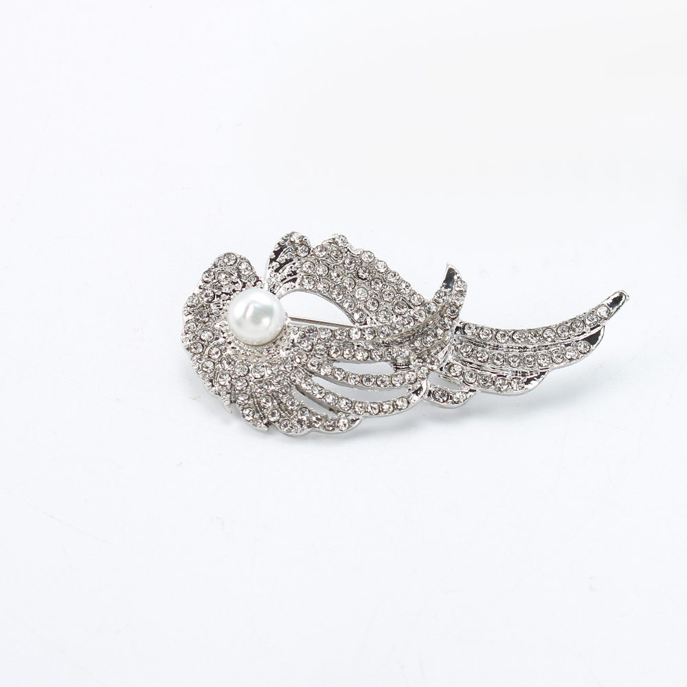 Broche perle d'eau douce, alliage de zinc, avec perle d'eau douce cultivée, forme d'aile, Placage de couleur d'or, bijoux de mode & avec strass, plus de couleurs à choisir, 58.67x11.69x28.27mm, Vendu par PC