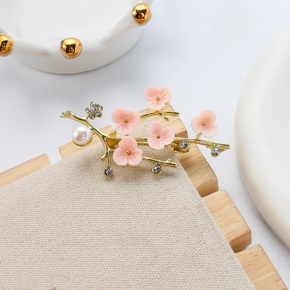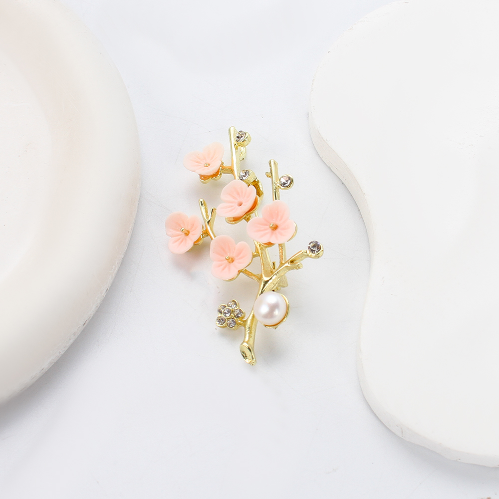 Broche perle d'eau douce, alliage de zinc, avec perle d'eau douce cultivée & résine, fleur, Placage de couleur d'or, bijoux de mode & avec strass, plus de couleurs à choisir, 62.22x13.31x32.93mm, Vendu par PC
