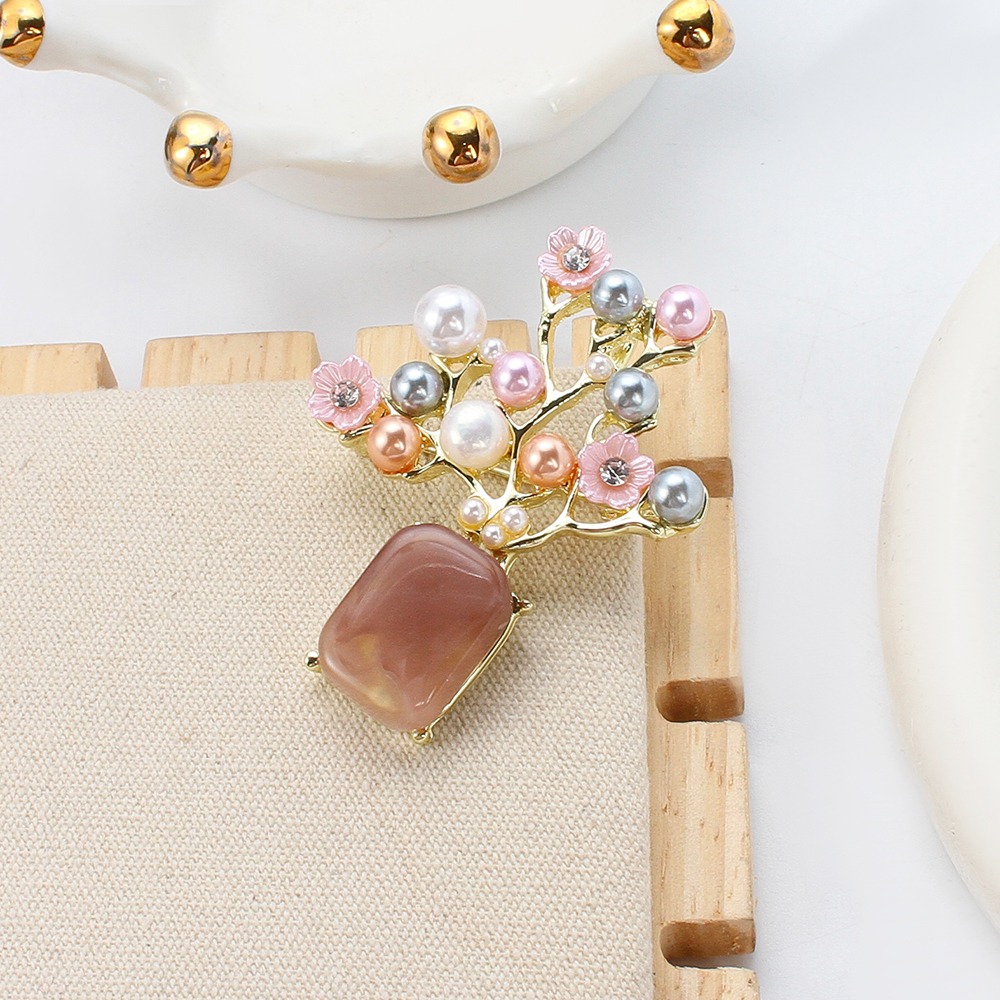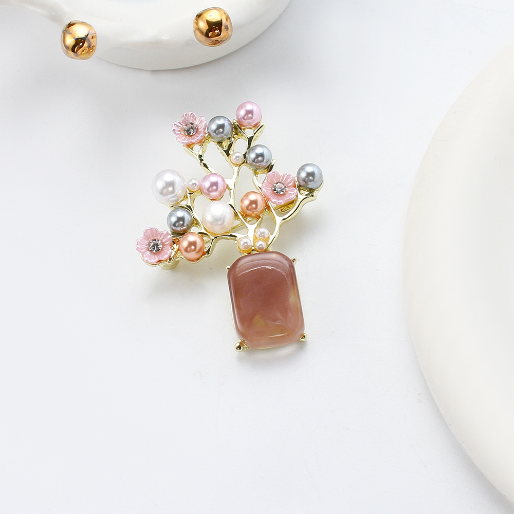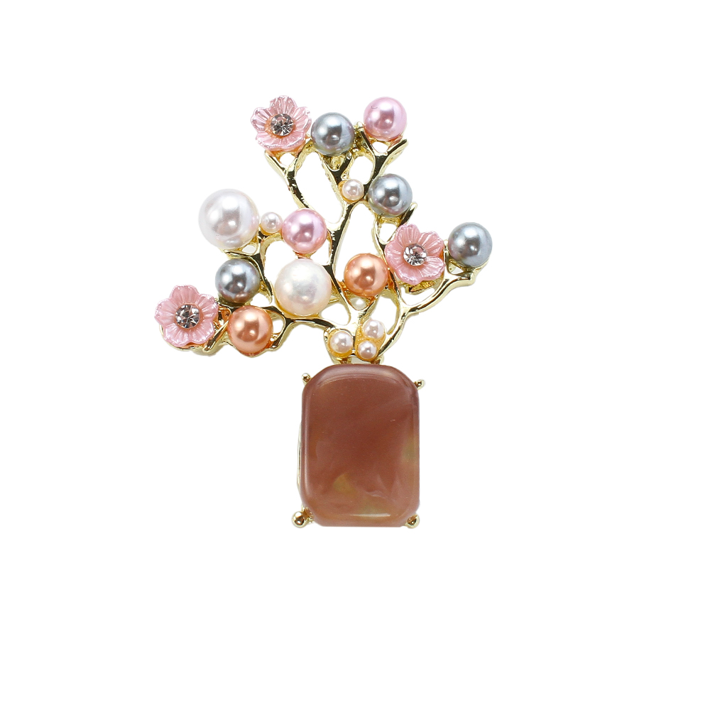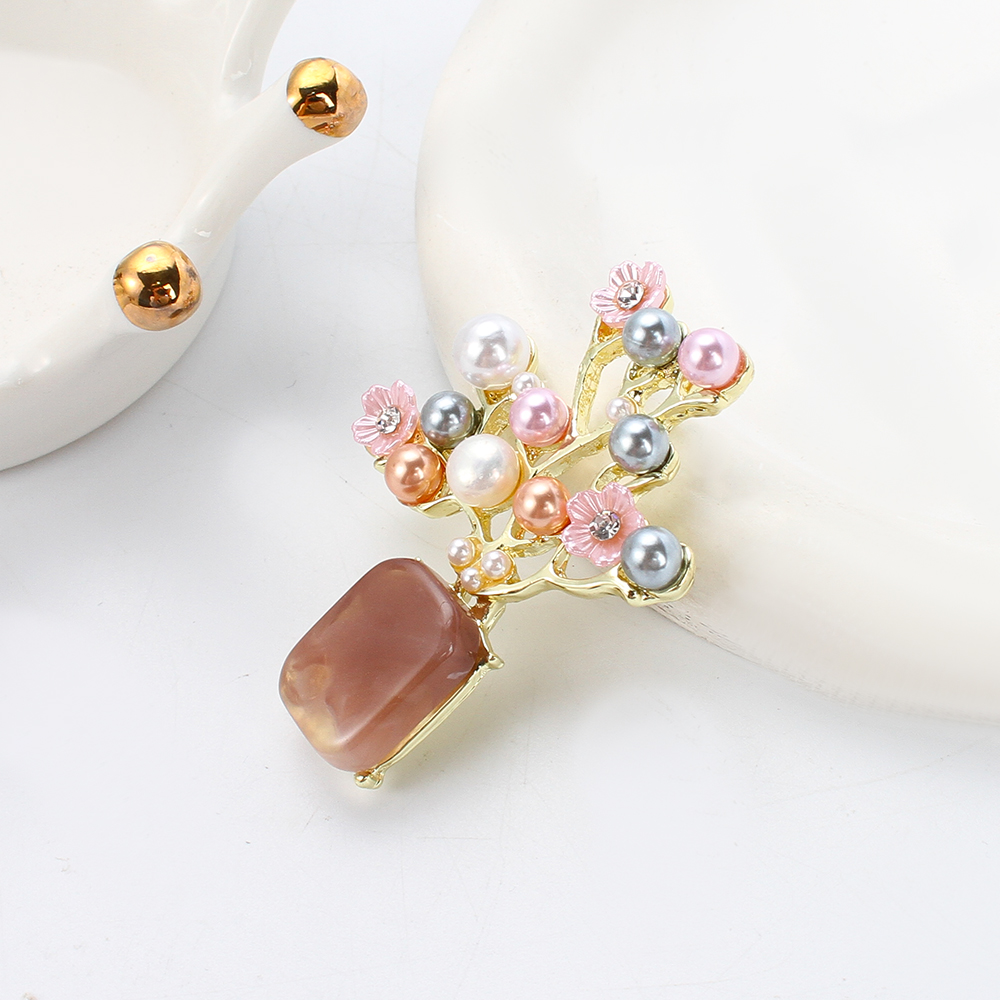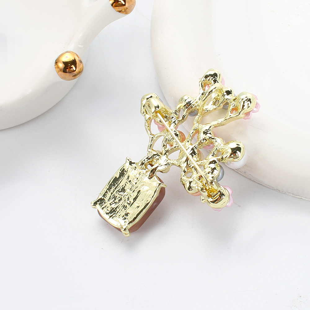 Broche perle d'eau douce, alliage de zinc, avec perle d'eau douce cultivée & résine & Acrylique, Placage de couleur d'or, bijoux de mode & avec strass, plus de couleurs à choisir, 44.32x14.91x56.94mm, Vendu par PC