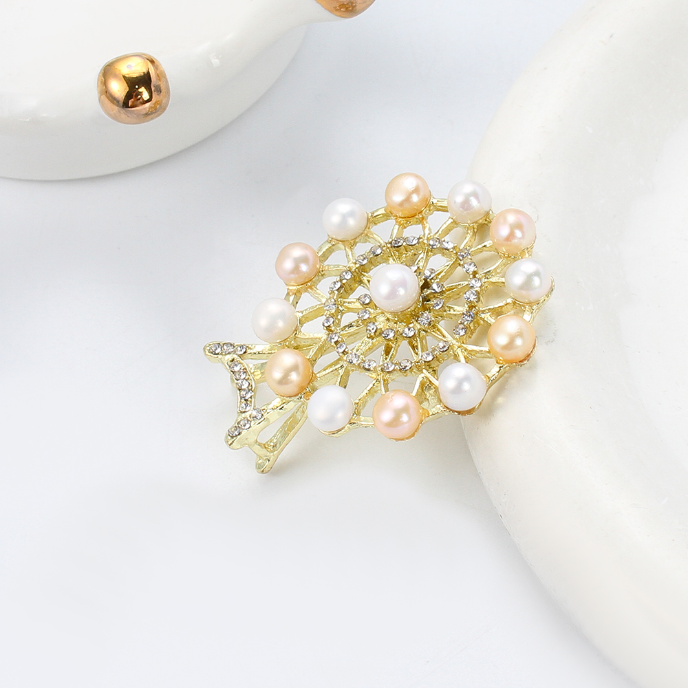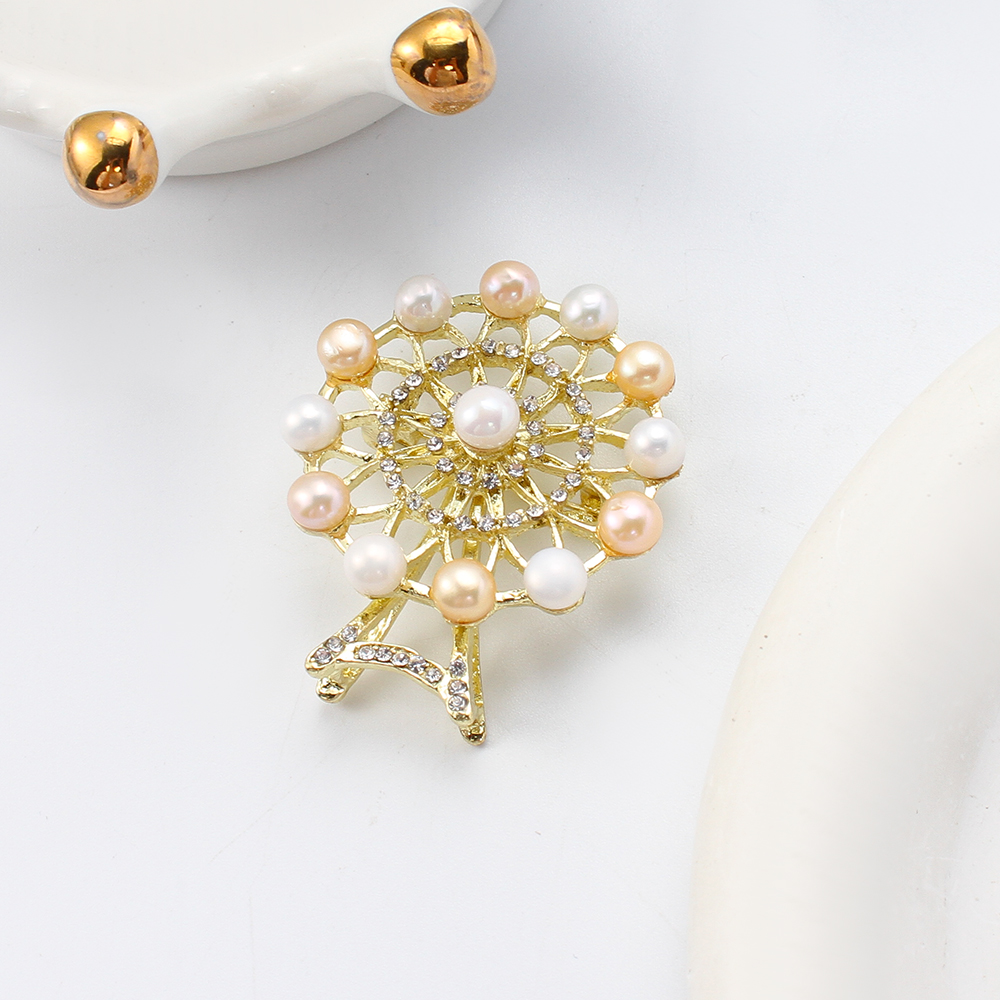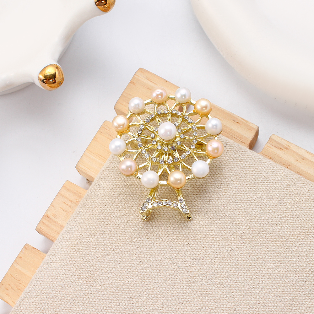 Broche perle d'eau douce, alliage de zinc, avec perle d'eau douce cultivée, Grande roue, Placage de couleur d'or, bijoux de mode & avec strass, plus de couleurs à choisir, 37.01x14.07x43.30mm, Vendu par PC