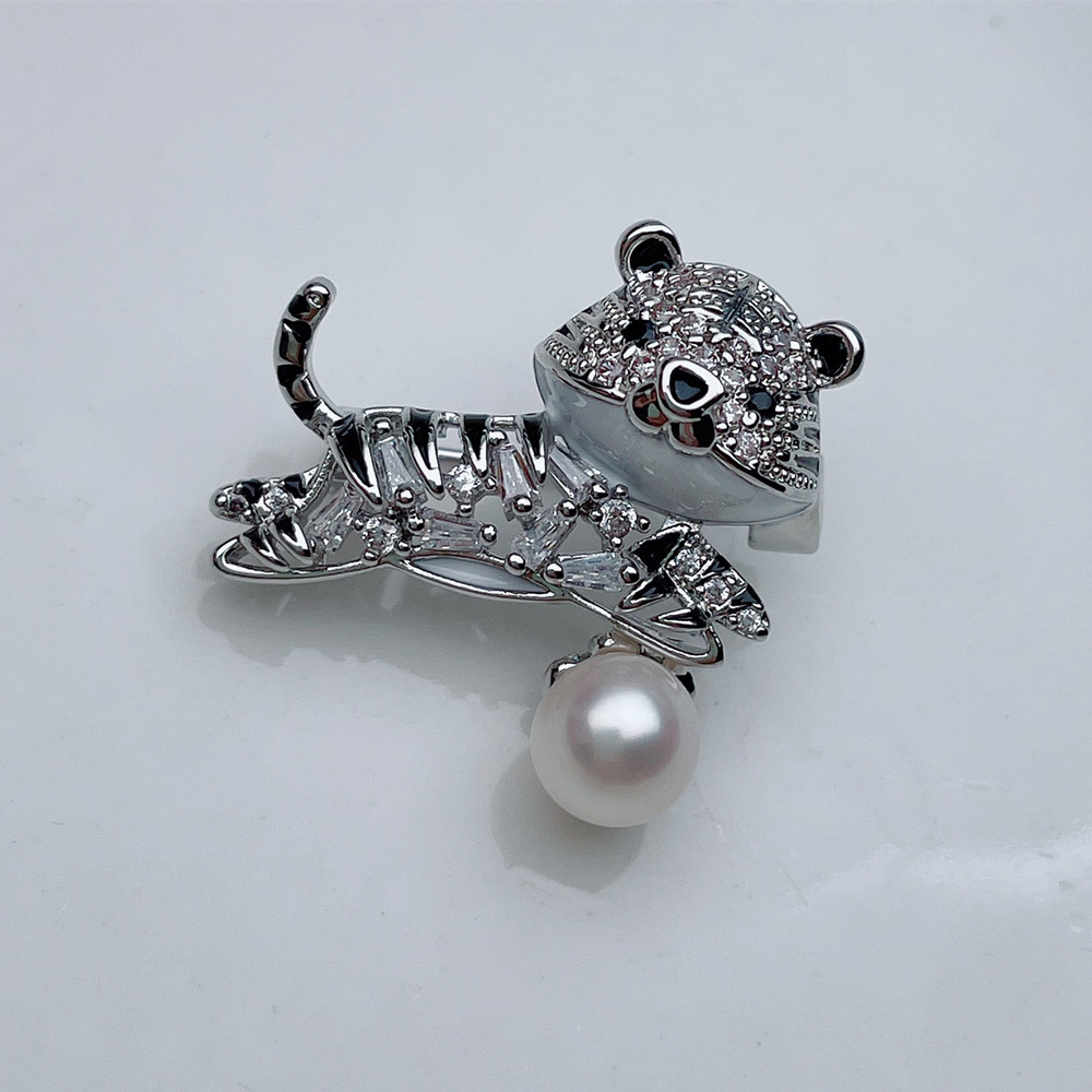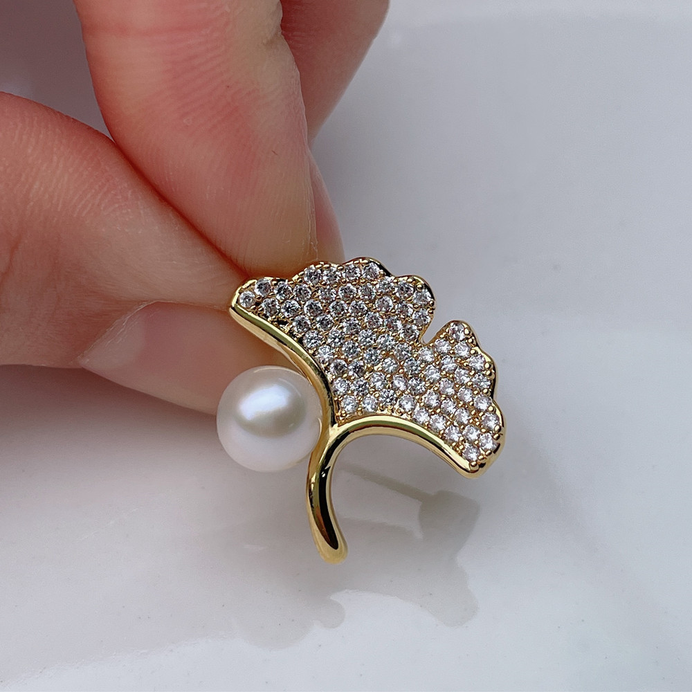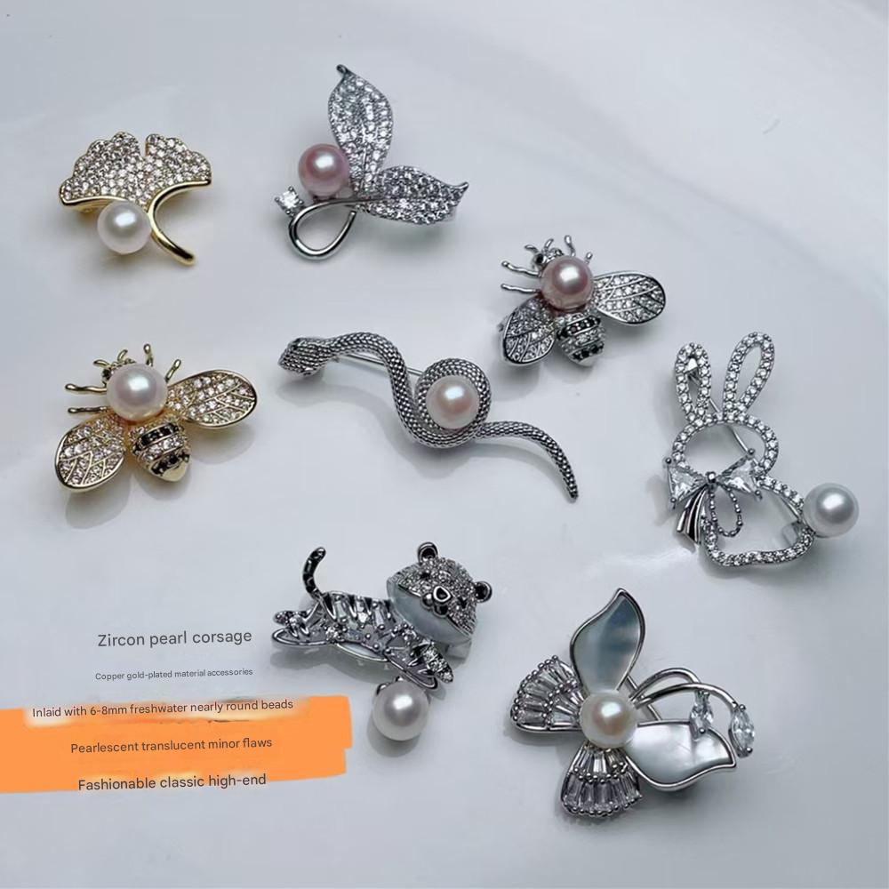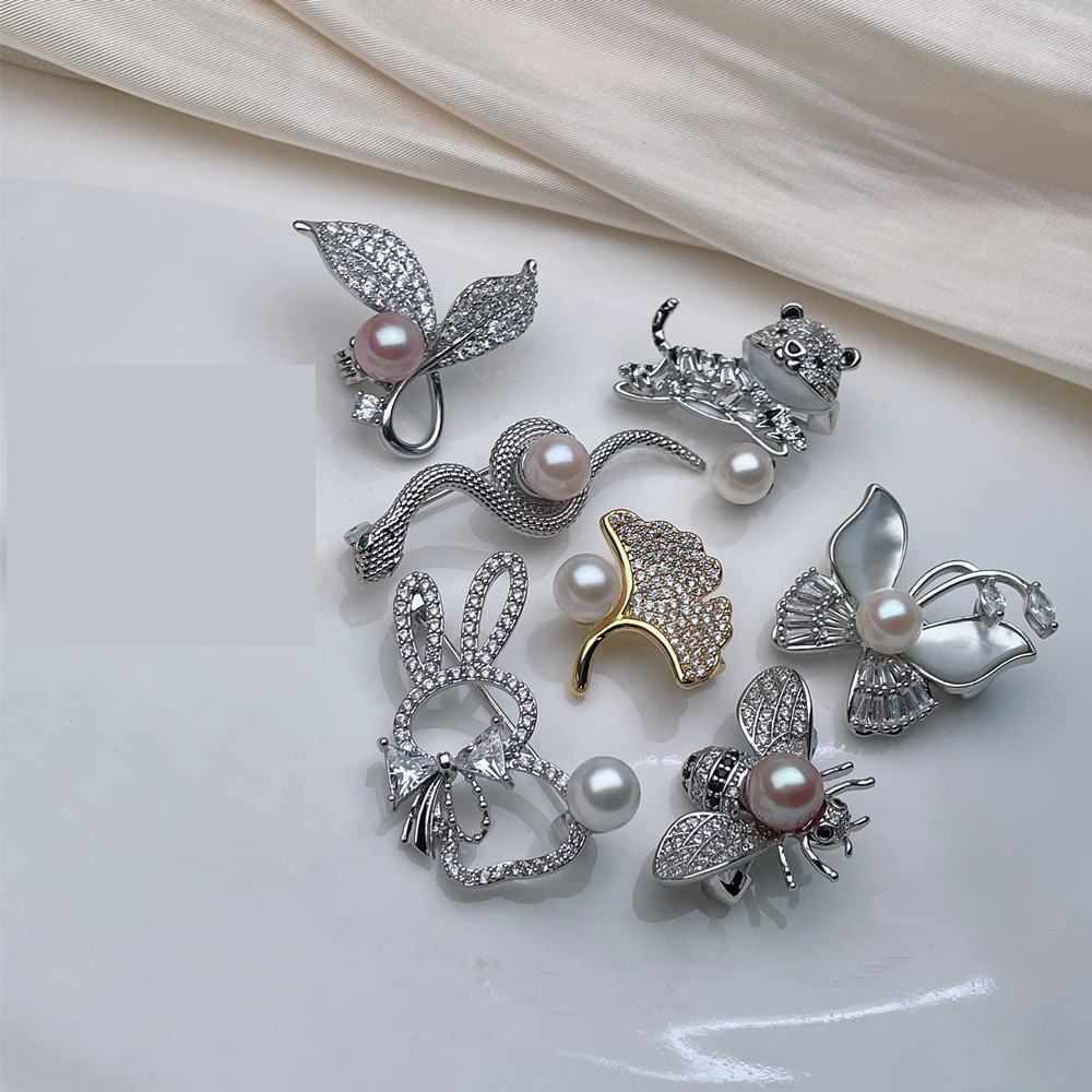 Broche perle d'eau douce, alliage de zinc, avec perle d'eau douce cultivée, Placage de couleur d'or, bijoux de mode & avec strass, plus de couleurs à choisir, 6-8mm, Vendu par PC