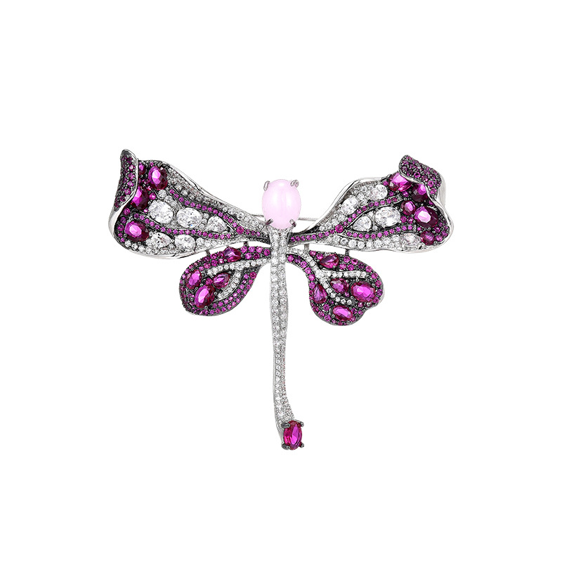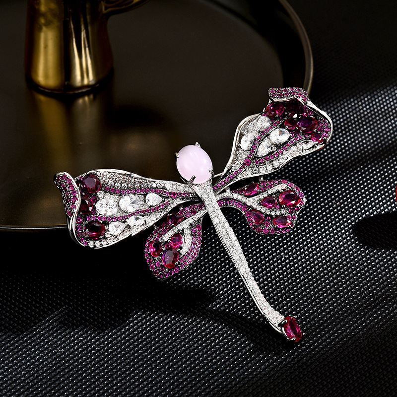 Broche zircon, laiton, Placage, pavé de micro zircon & pour femme, argent, 56x67mm, Vendu par PC
