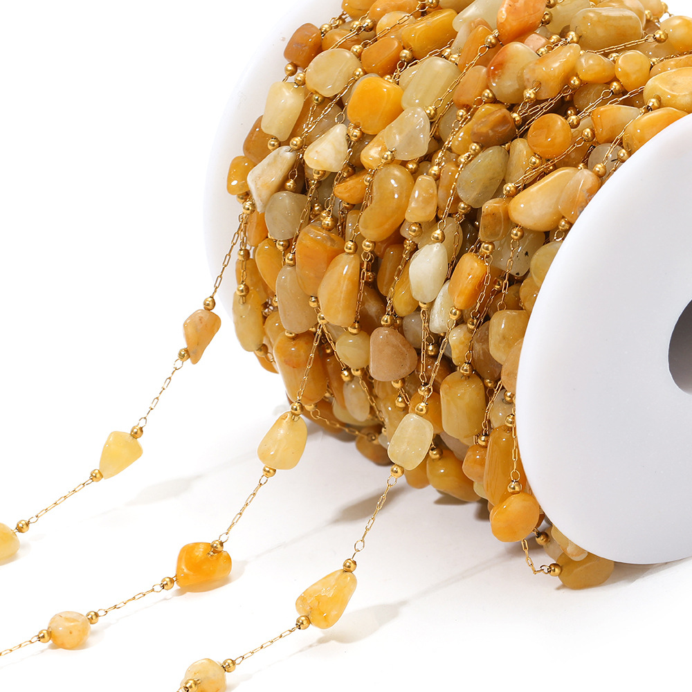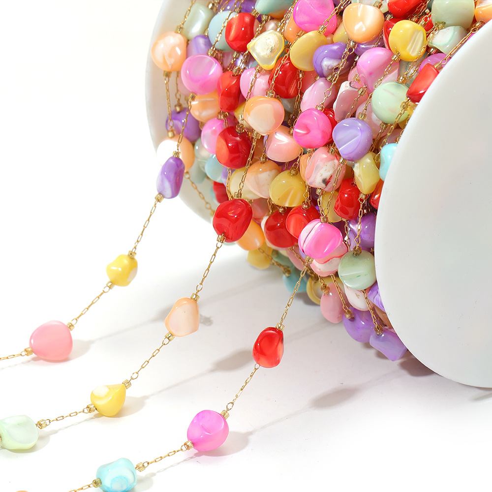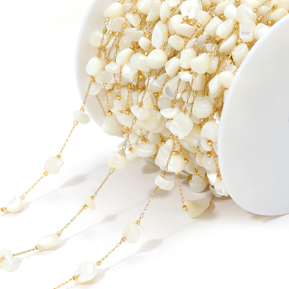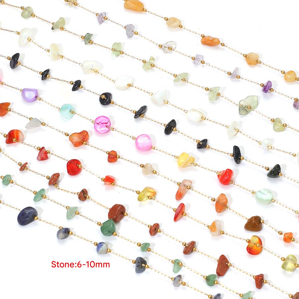 Chaîne à billes en acier inoxydable, Acier inoxydable 304, avec pierre gemme & coquille, Placage de couleur d'or, DIY & différents matériaux pour le choix, 1m/sac, Vendu par sac