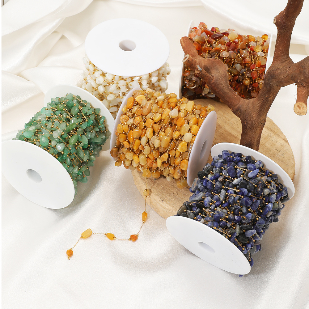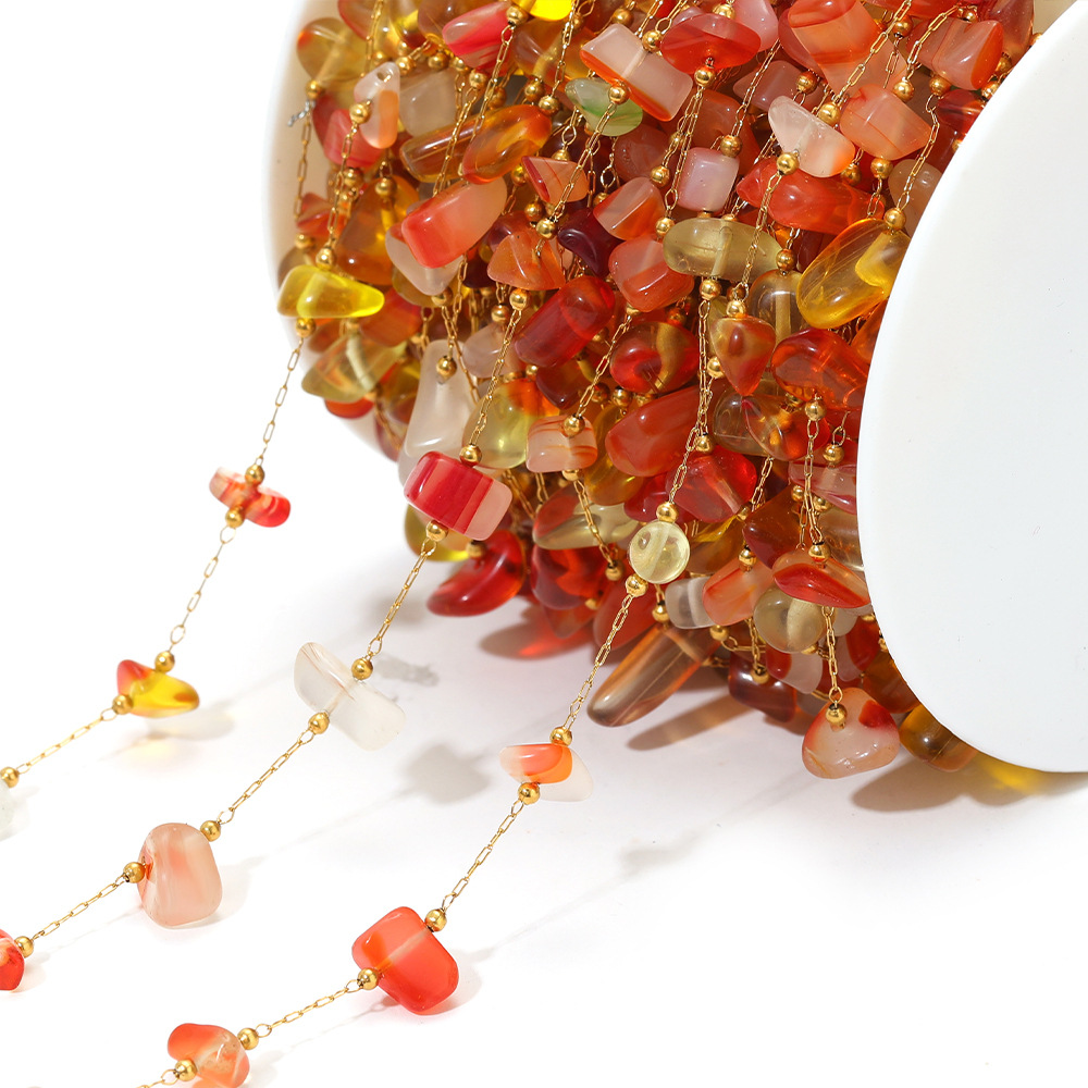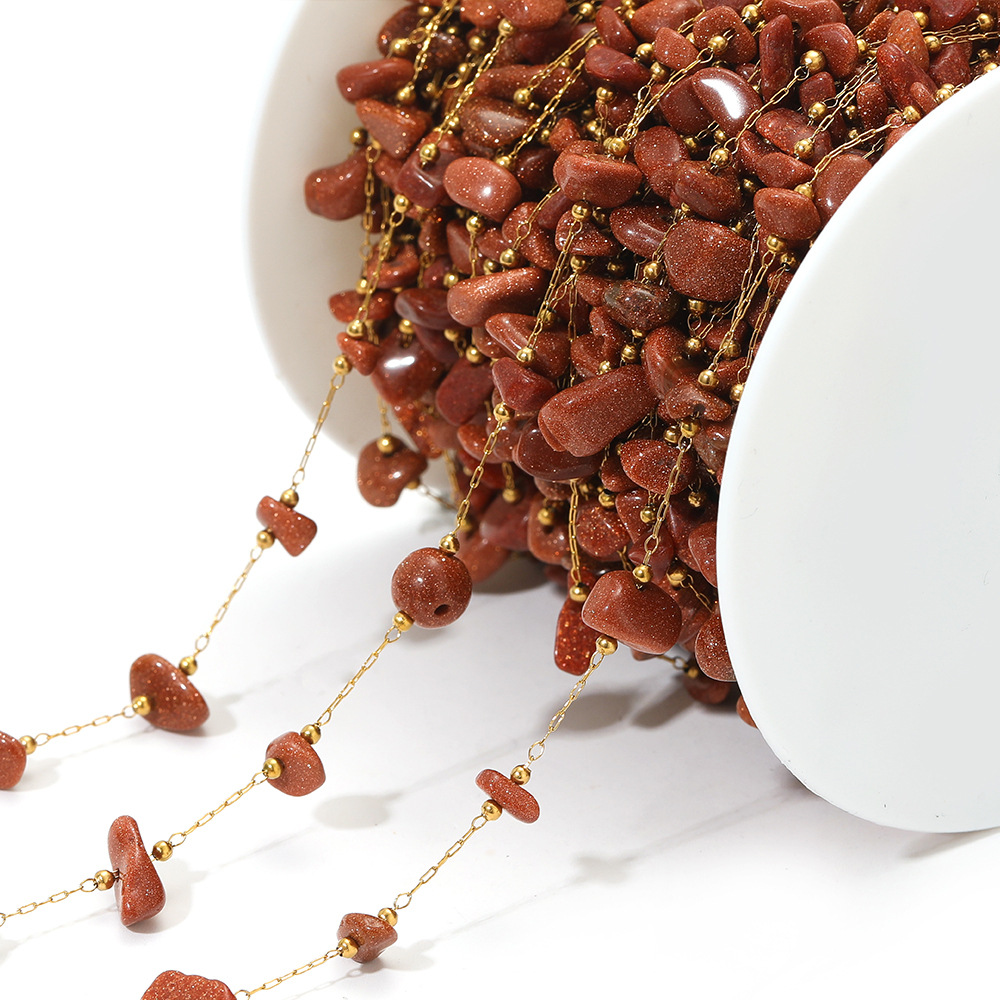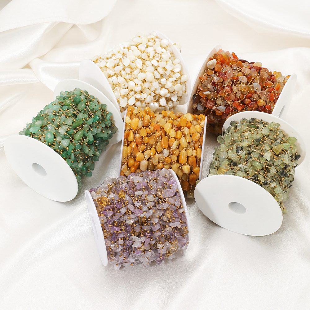 Chaîne à billes en acier inoxydable, Acier inoxydable 304, avec pierre gemme & coquille, Placage de couleur d'or, DIY & différents matériaux pour le choix, 1m/sac, Vendu par sac