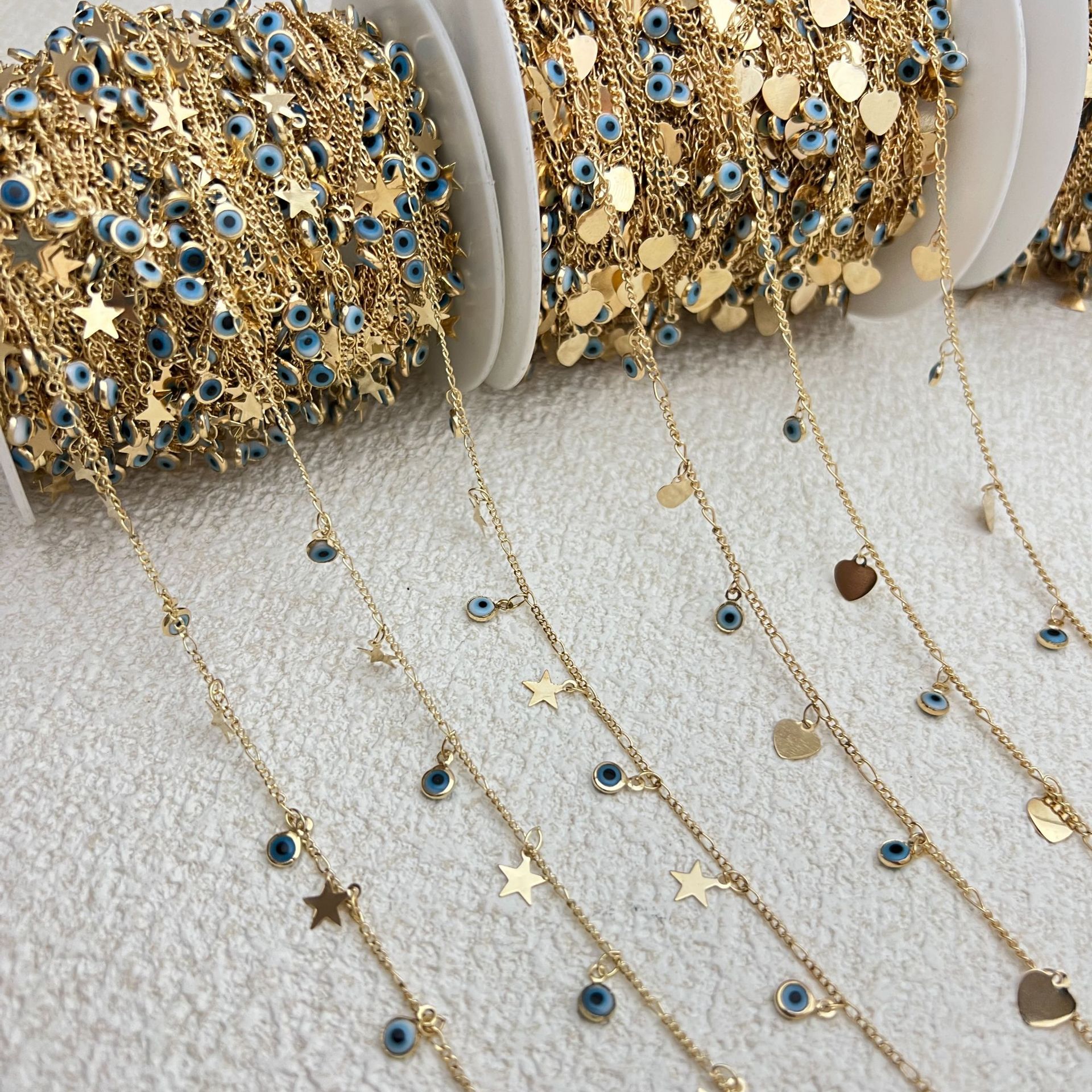 Chaîne collier en laiton, Placage, DIY & motif de mauvais œil & émail, plus de couleurs à choisir, protéger l'environnement, sans nickel, plomb et cadmium, Longueur 1 m, Vendu par m
