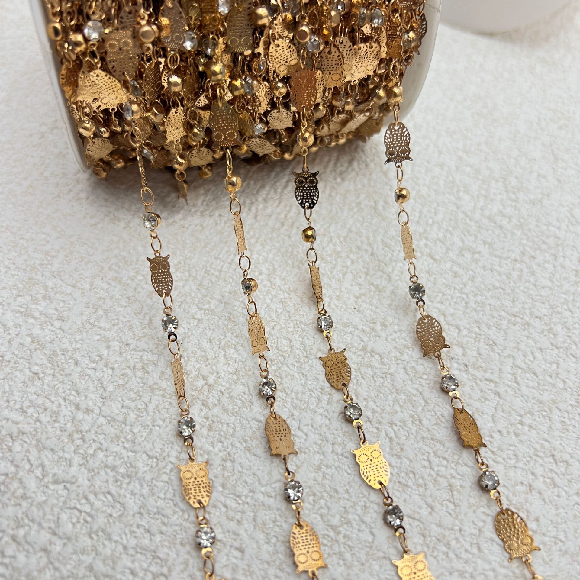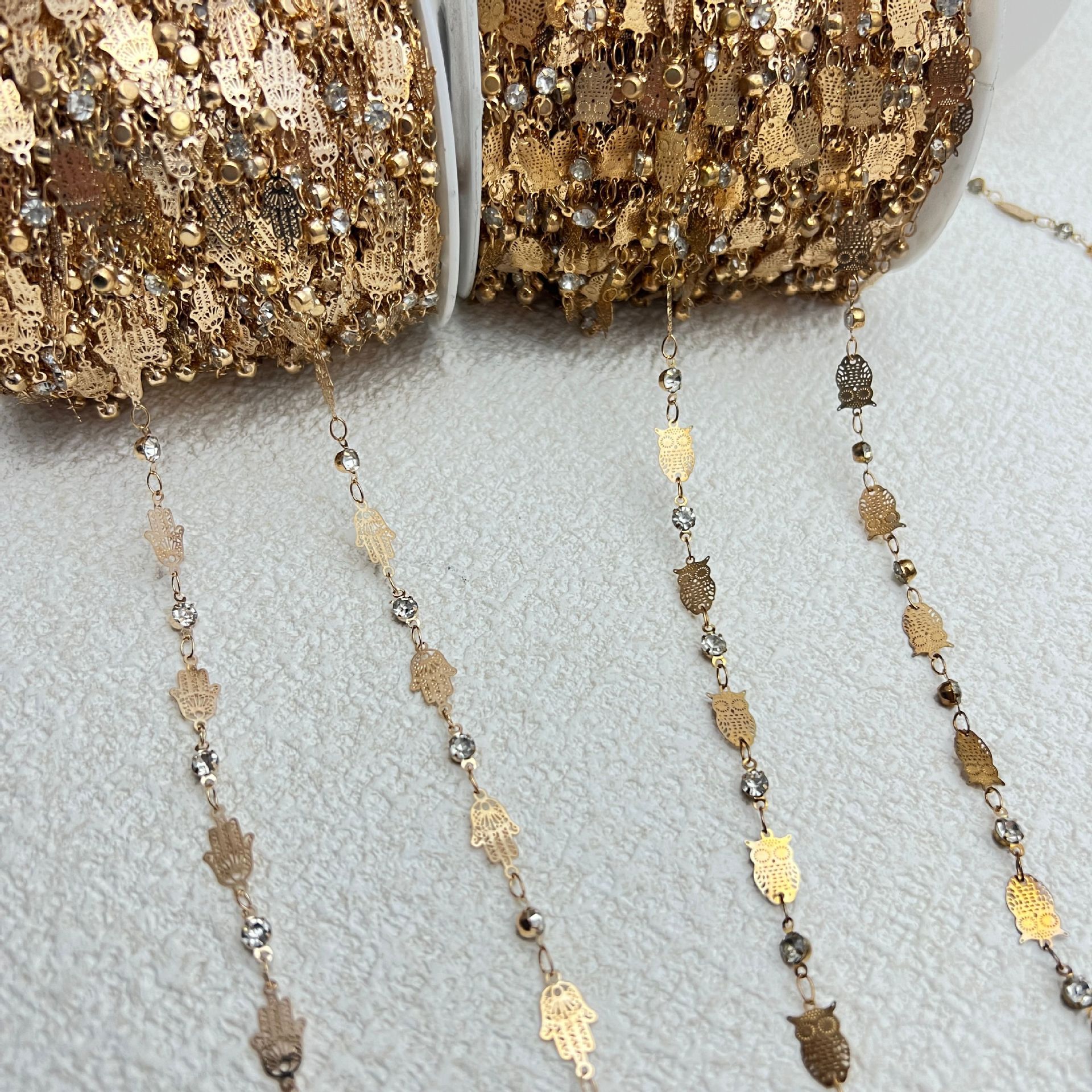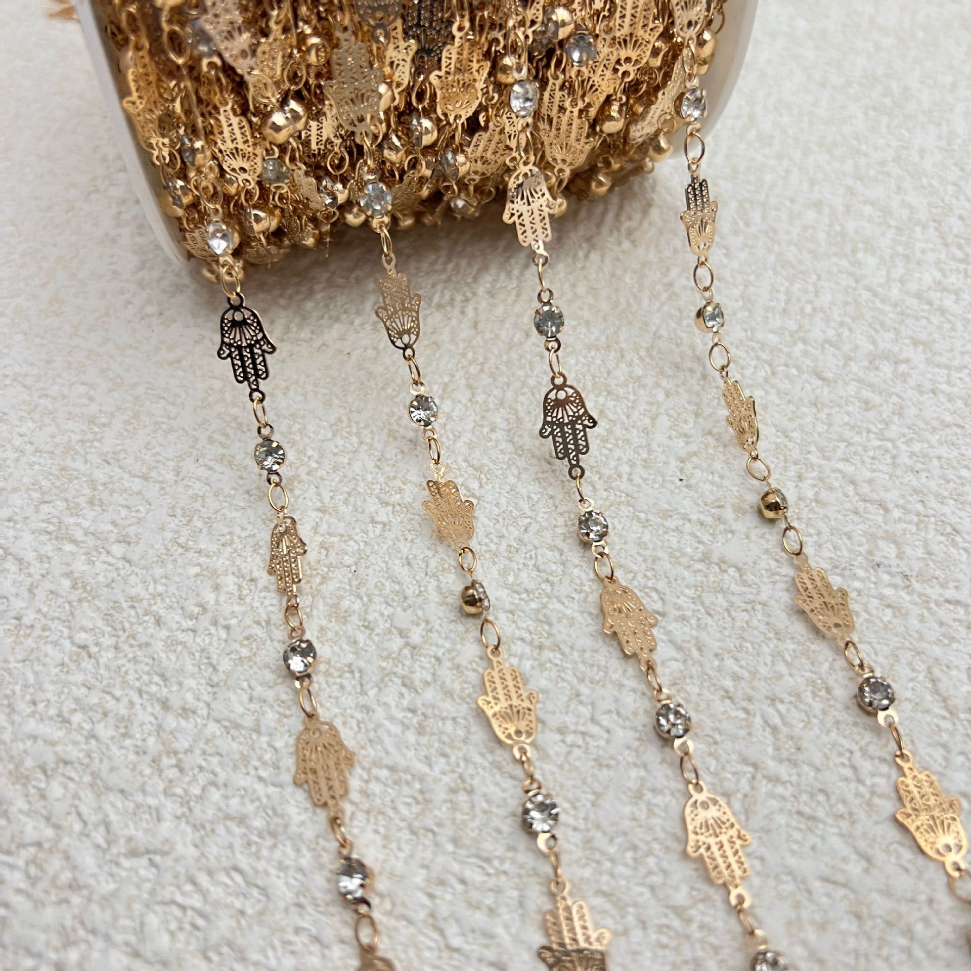 Chaîne collier en laiton, Placage de couleur d'or, DIY & styles différents pour le choix & avec strass, plus de couleurs à choisir, protéger l'environnement, sans nickel, plomb et cadmium, Longueur 1 m, Vendu par m
