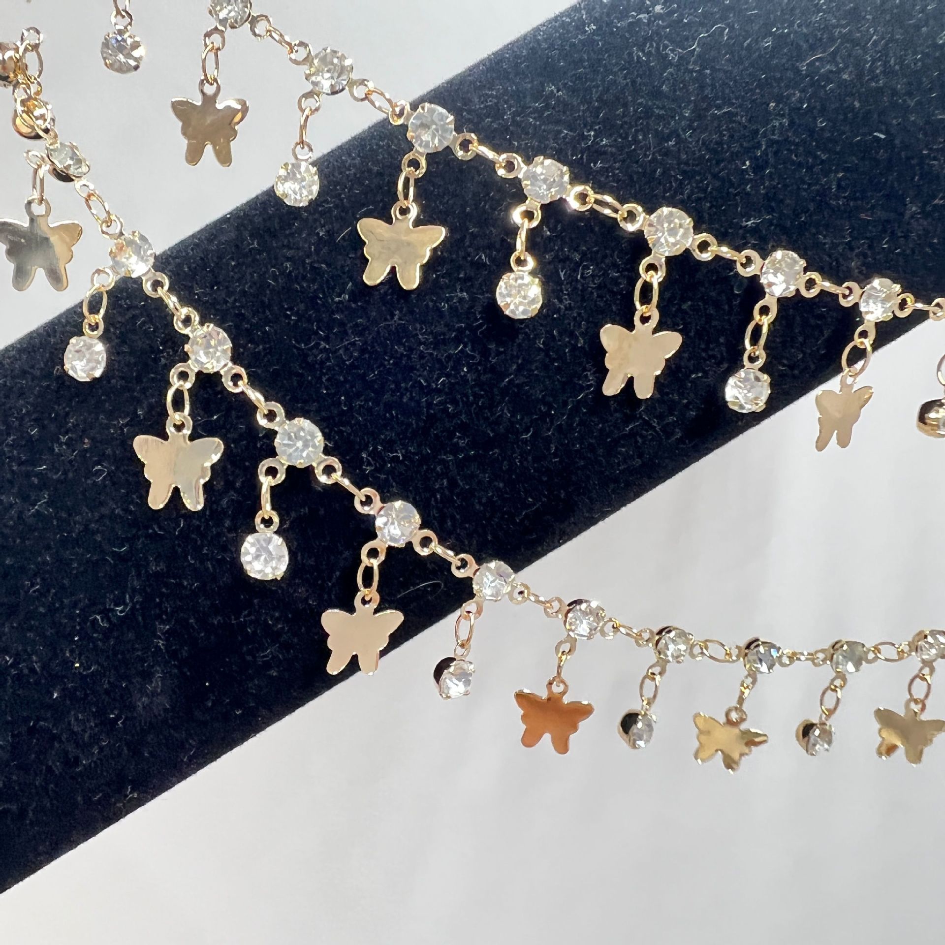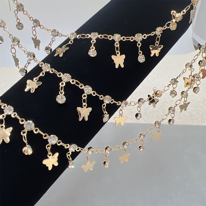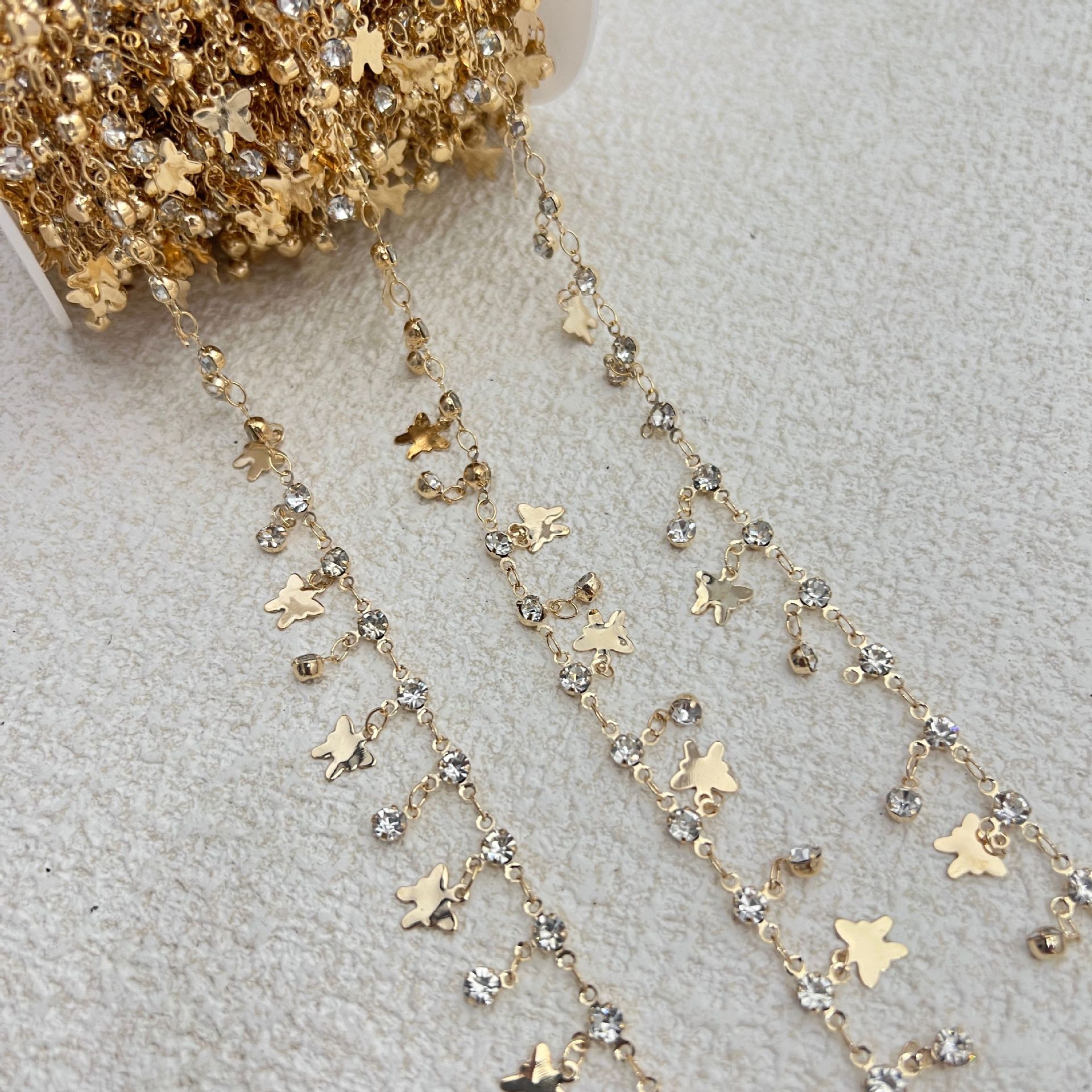 Chaîne collier en laiton, papillon, Placage de couleur d'or, DIY & pavé de micro zircon, protéger l'environnement, sans nickel, plomb et cadmium, Longueur 1 m, Vendu par m