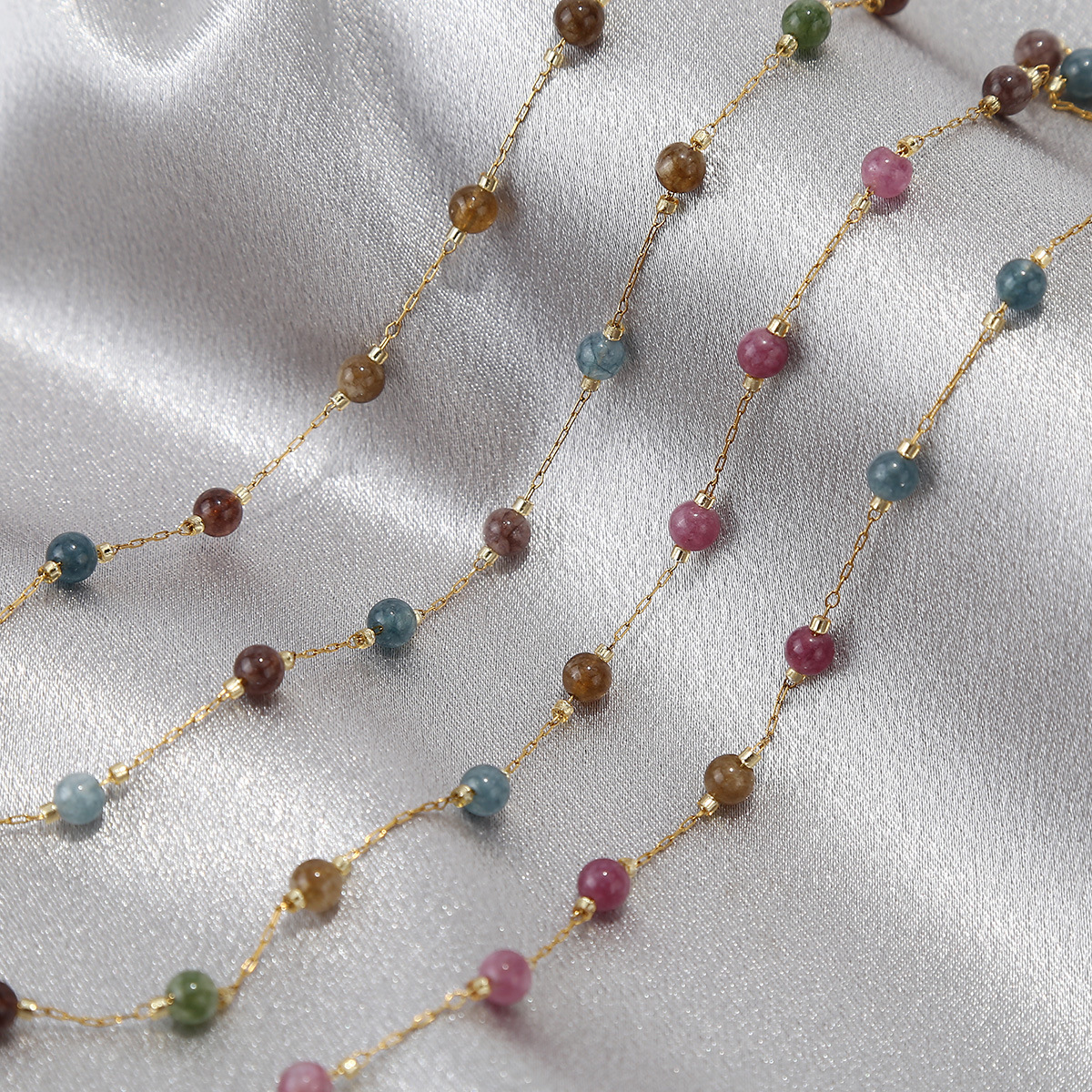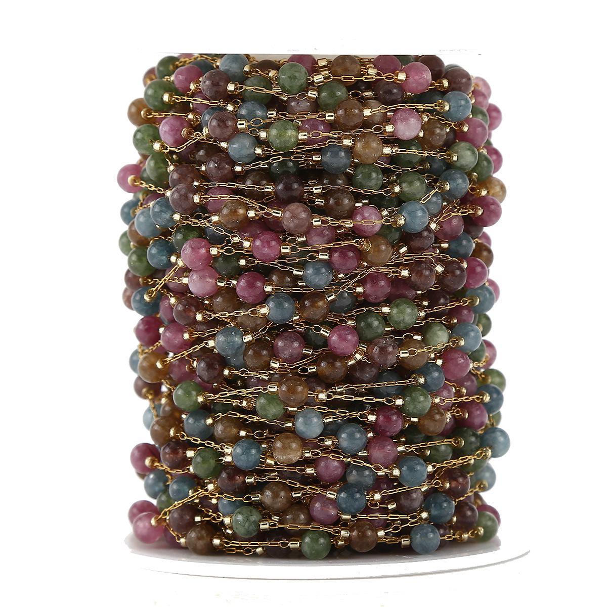 Chaîne de perles de pierre gemme, Acier inoxydable 304, avec pierre gemme, Placage de couleur d'or, DIY, multicolore, Vendu par m