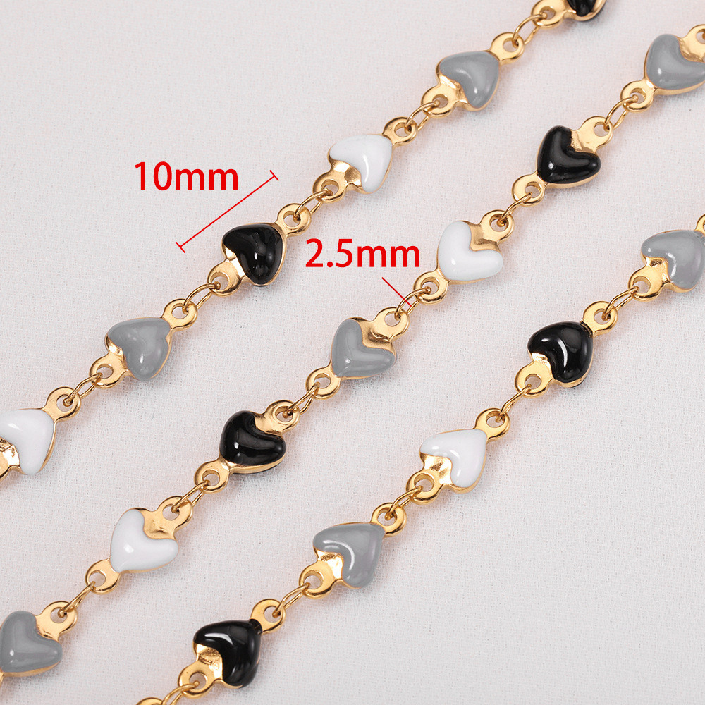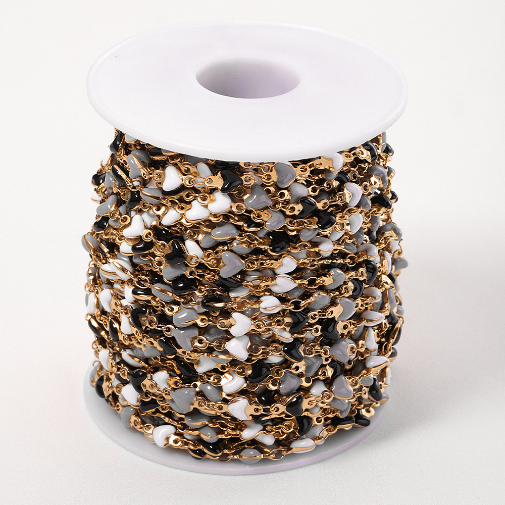 Chaîne de perles de pierre gemme, Acier inoxydable 304, coeur, Placage de couleur d'or, DIY & émail, Vendu par m