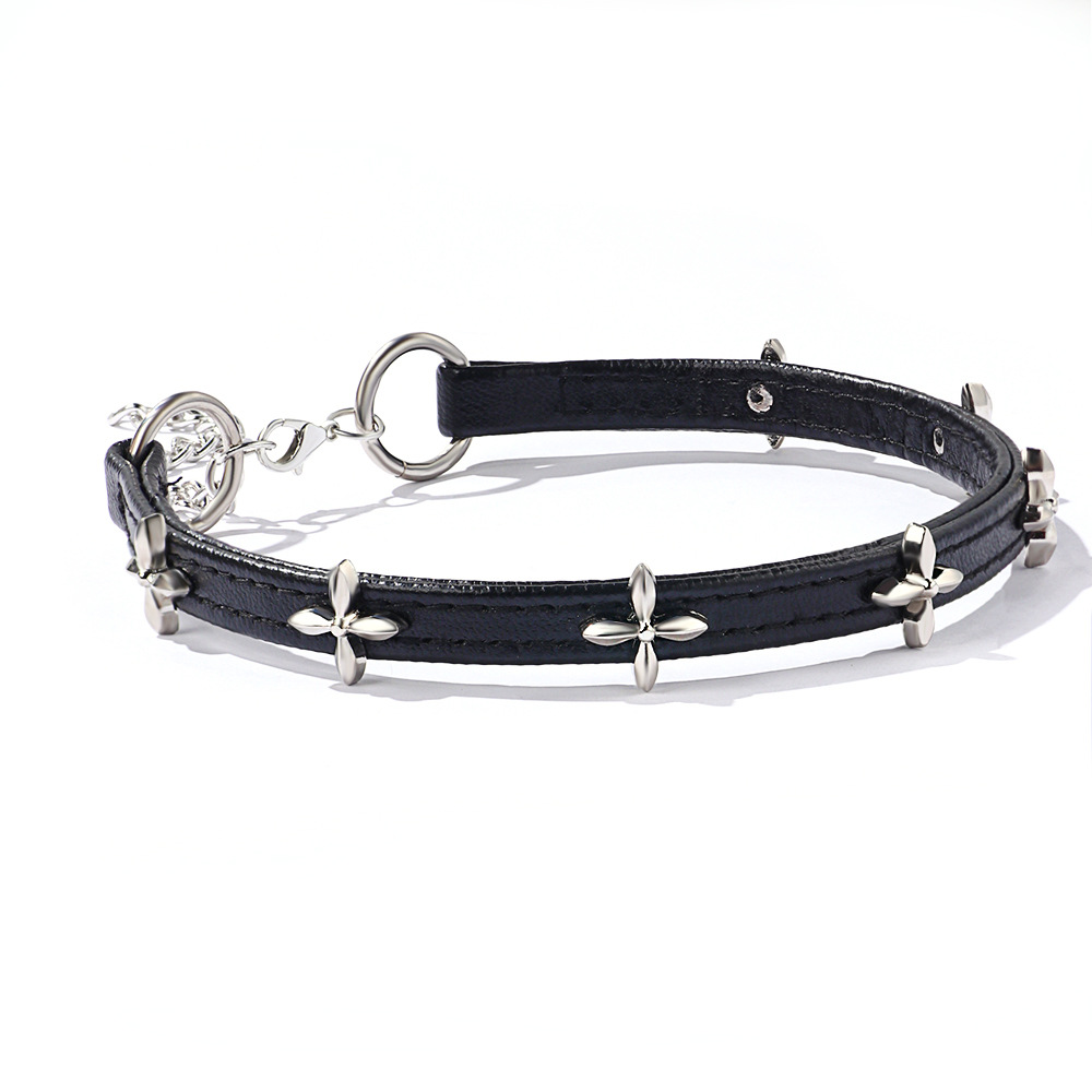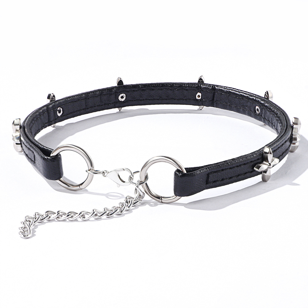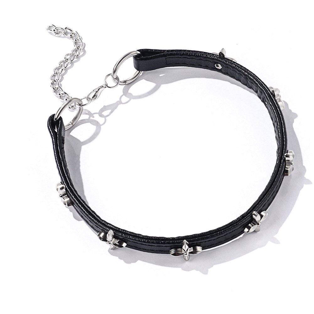 Collier à, alliage de zinc, avec cuir PU, bijoux de mode & pour femme, noire, Longueur 34.5-42 cm, Vendu par PC