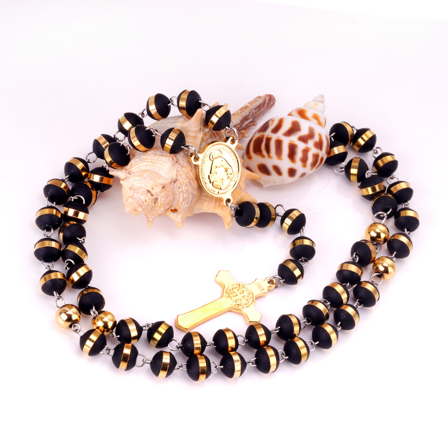 Collier bijoux de pierre gemme, Acier inoxydable 304, avec pierre noire, Placage de couleur d'or, bijoux de mode & unisexe, Vendu par PC