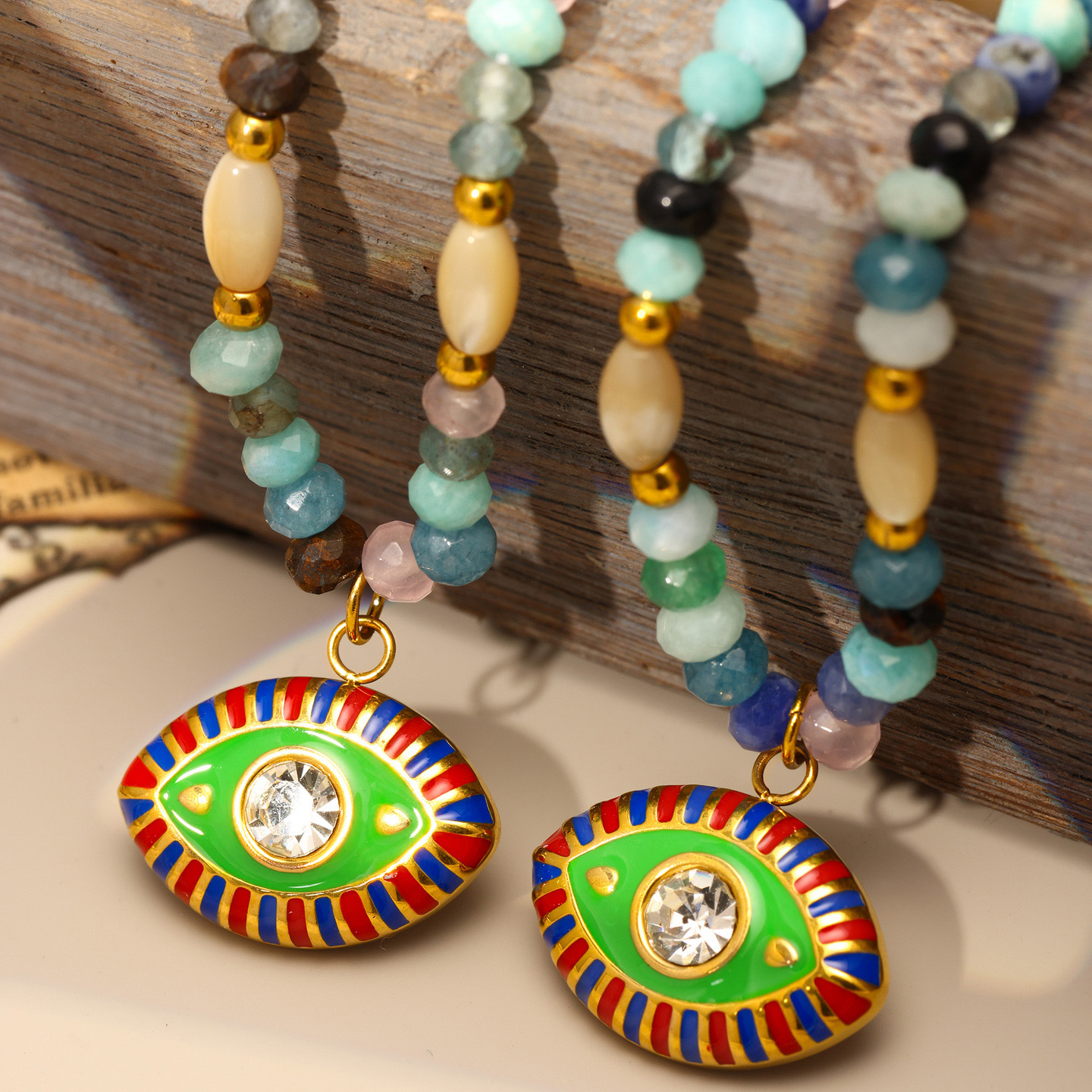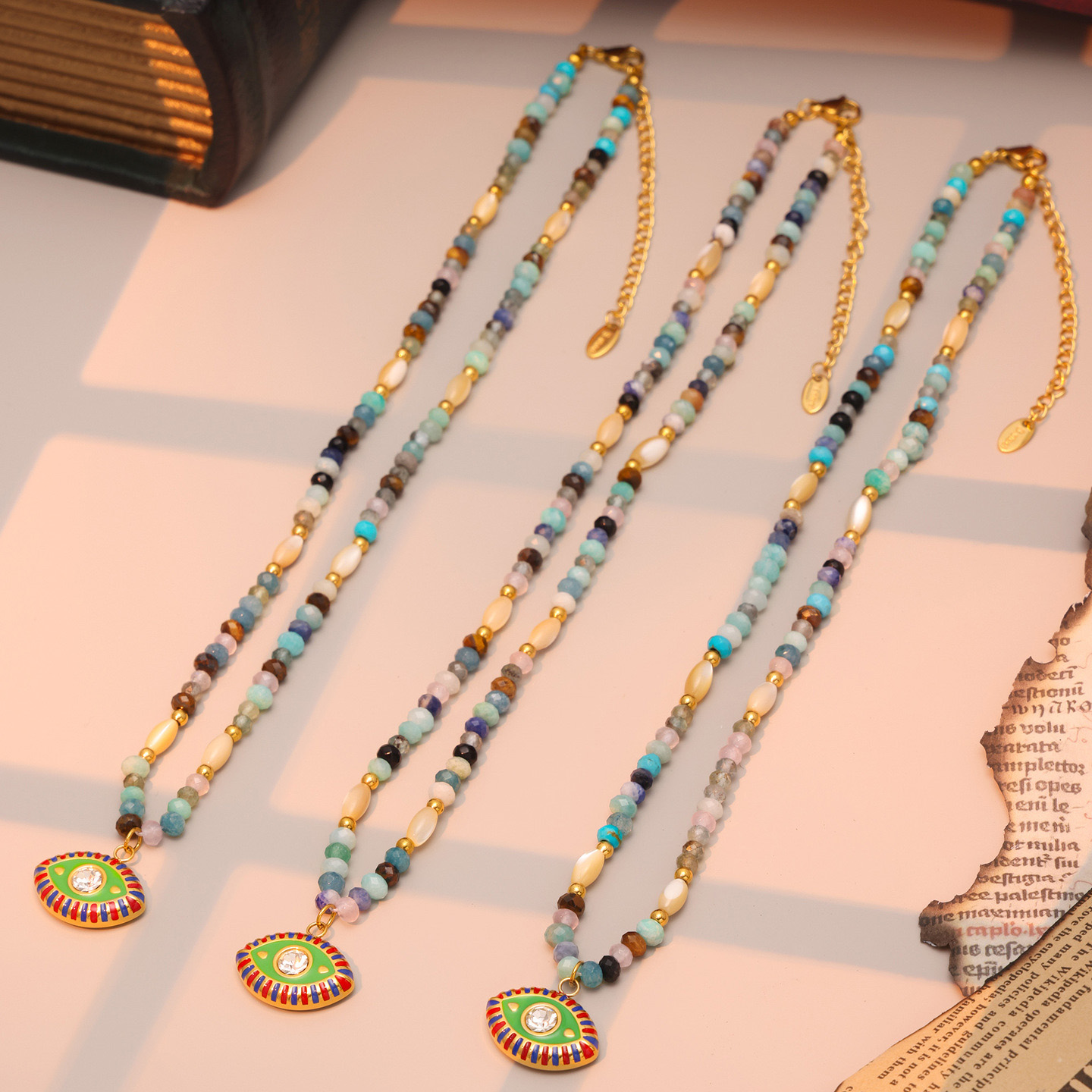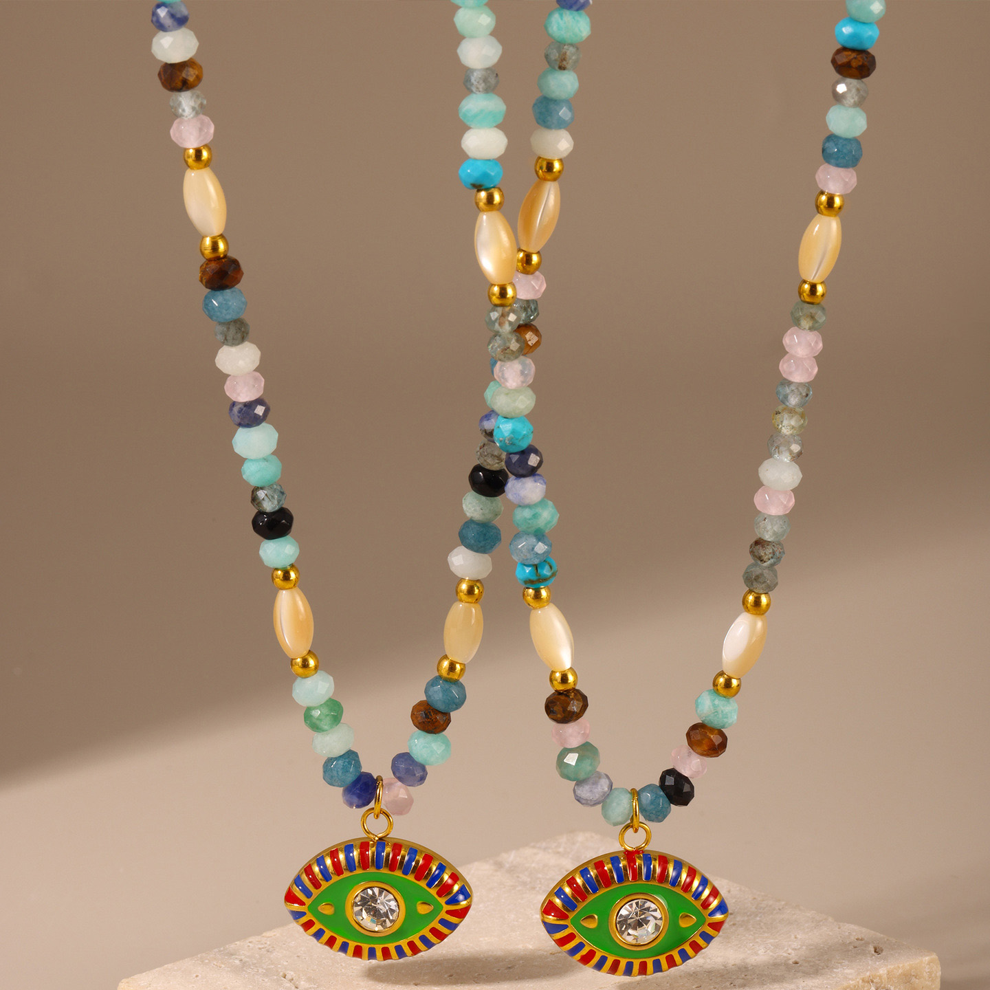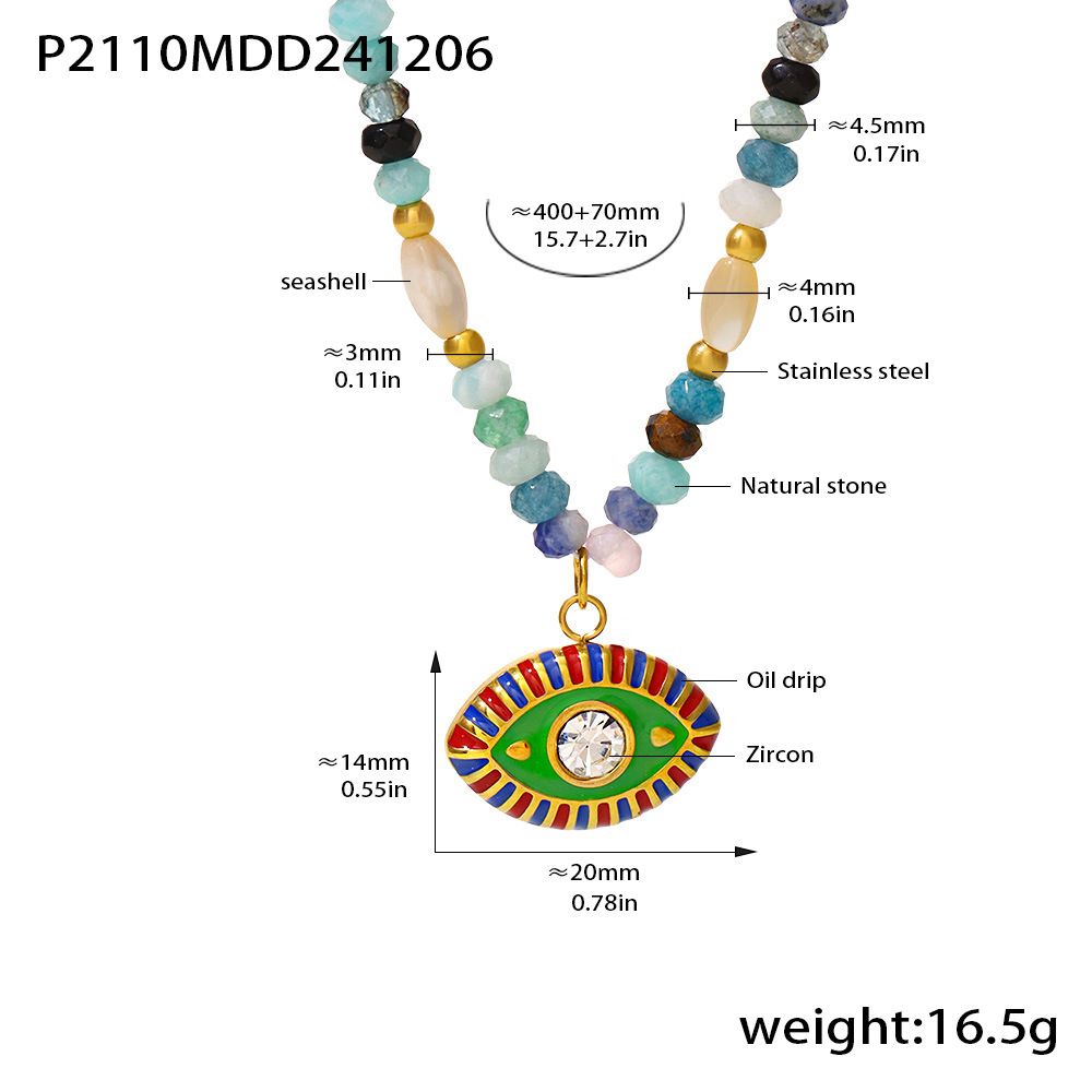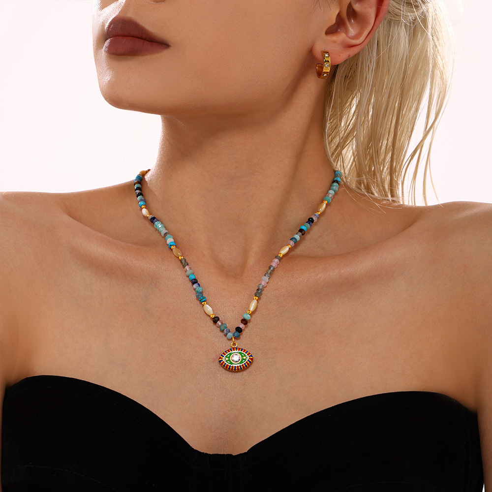 Collier bijoux de pierre gemme, Acier inoxydable 304, avec Pierre naturelle & zircon cubique, Placage, bijoux de mode & pour femme & émail, multicolore, Vendu par PC