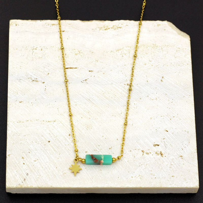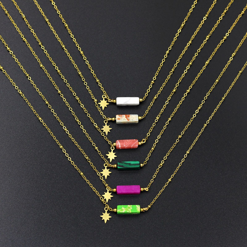 Collier bijoux de pierre gemme, Acier inoxydable 304, avec Pierre naturelle, Placage de couleur d'or, bijoux de mode, plus de couleurs à choisir, Vendu par PC
