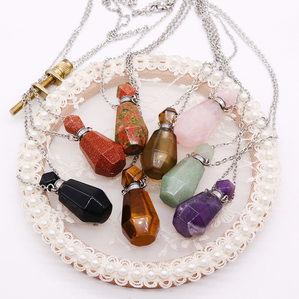 Collier bijoux de pierre gemme, Pierre naturelle, peut s’ouvrir et mettre dans quelque chose & différents matériaux pour le choix & unisexe, 25x38mm, Longueur Environ 41-50 cm, Vendu par PC
