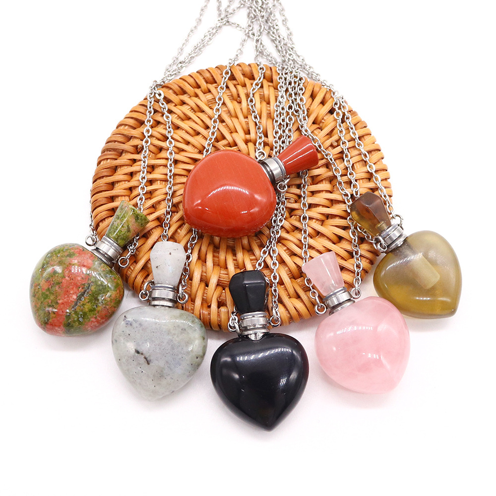Collier bijoux de pierre gemme, Pierre naturelle, avec Acier inoxydable 304, peut s’ouvrir et mettre dans quelque chose & différents matériaux pour le choix & unisexe, 23x36mm, Longueur Environ 41-50 cm, Vendu par PC