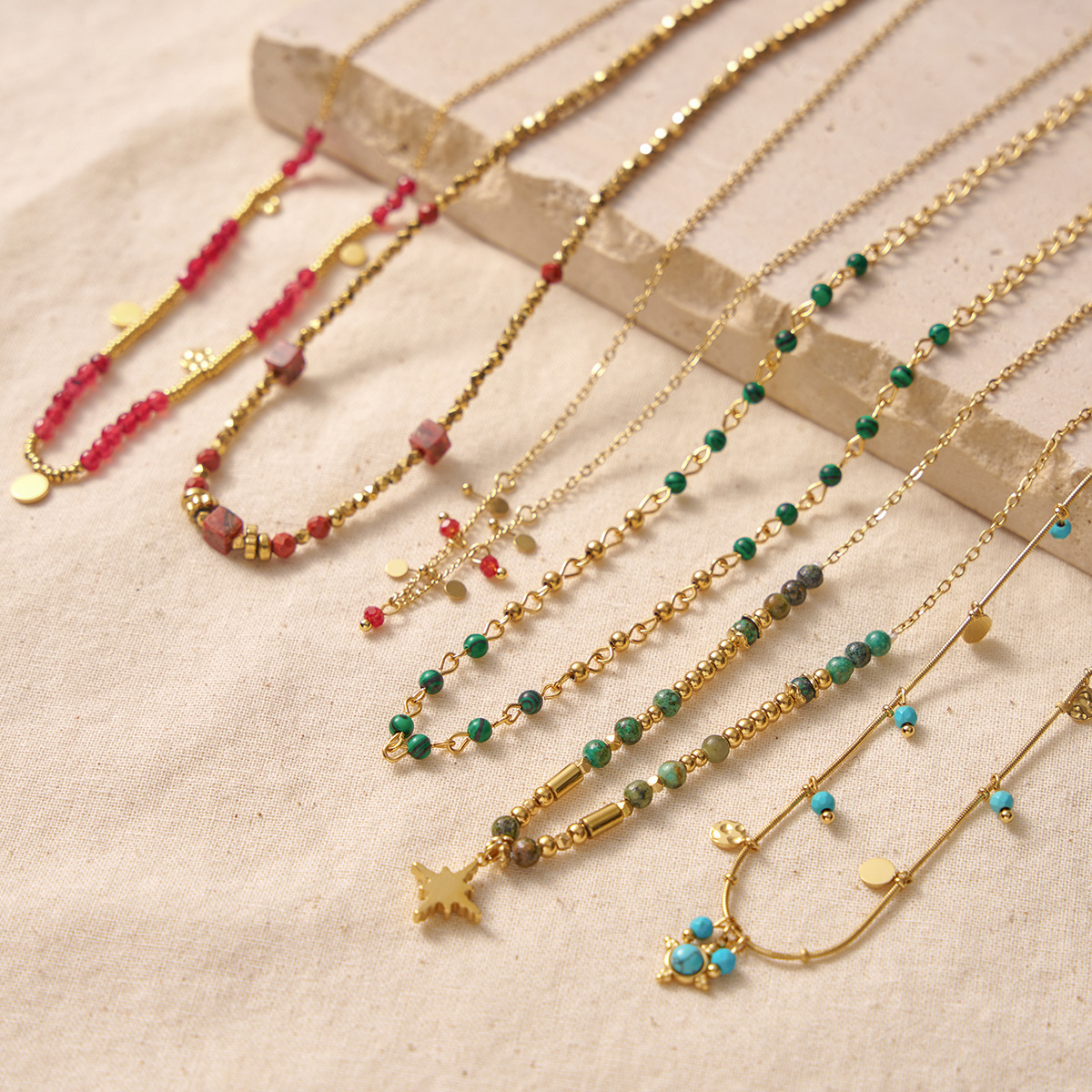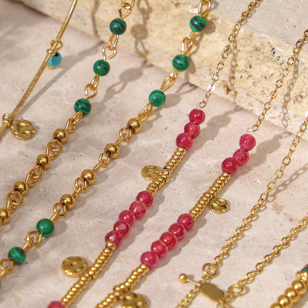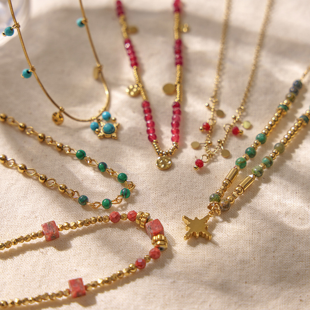 Collier bijoux de pierre gemme, Acier inoxydable 304, avec Pierre naturelle, Plaqué or 18K, bijoux de mode & styles différents pour le choix & pour femme, Vendu par PC
