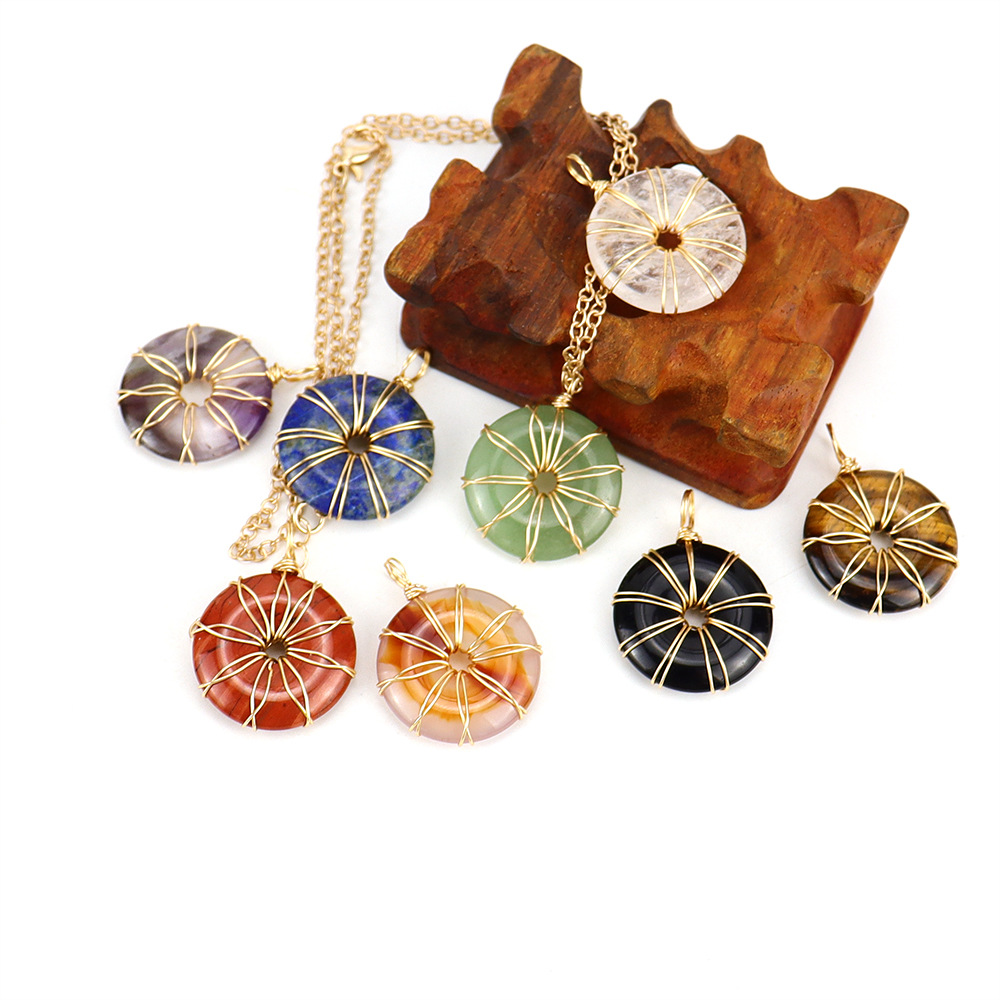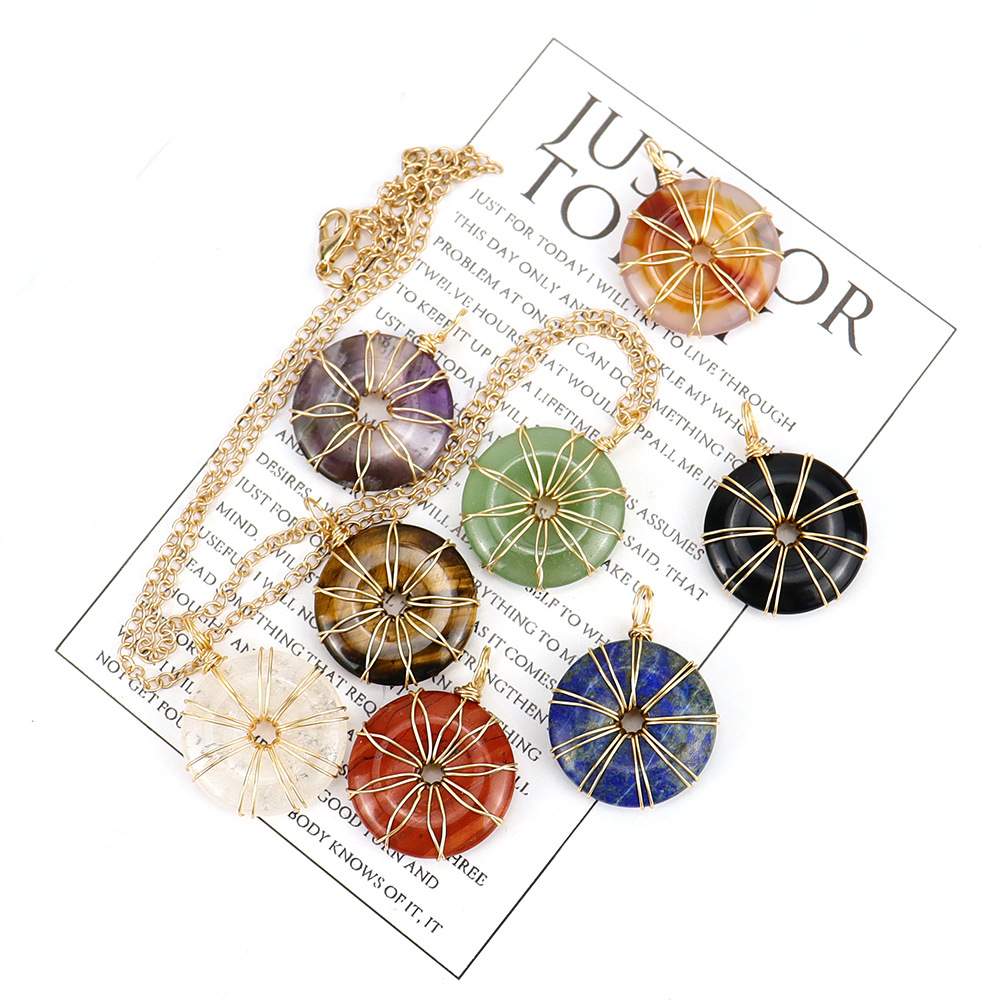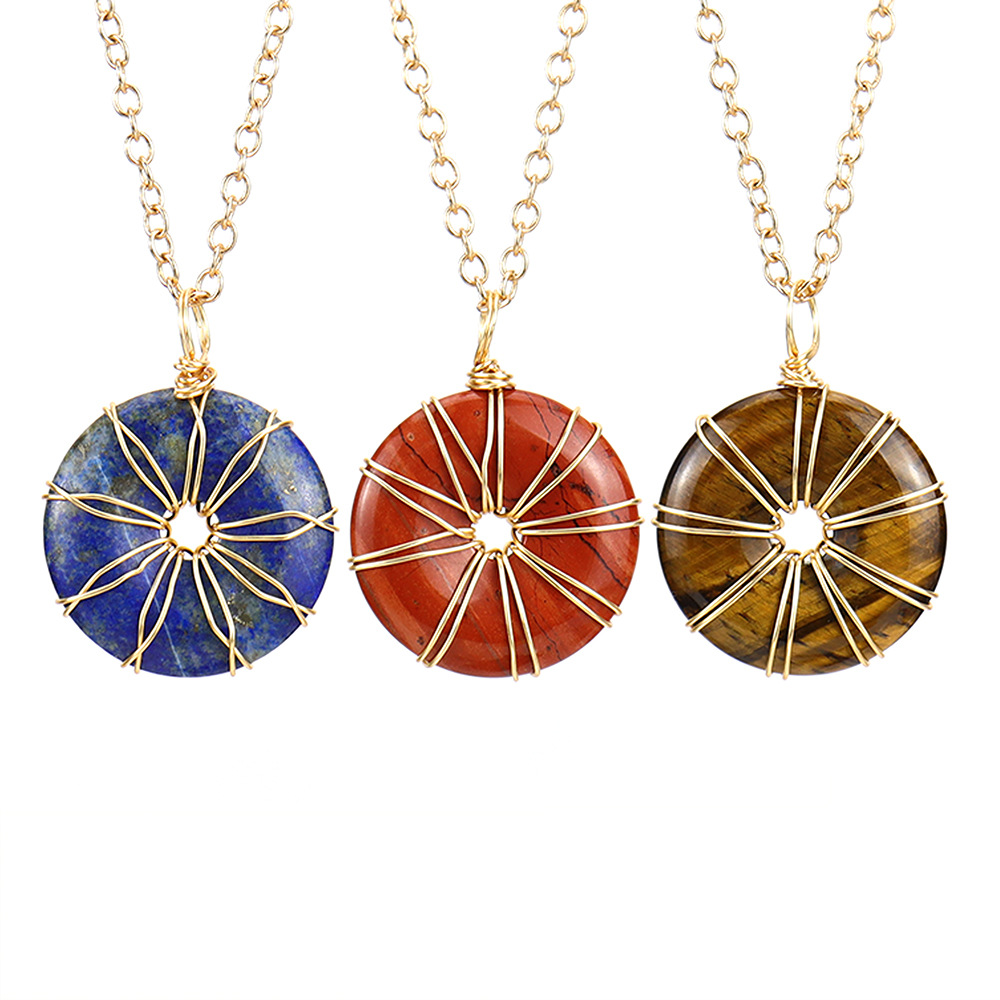 Collier bijoux de pierre gemme, avec fil en laiton & laiton, fait à la main, différents matériaux pour le choix & unisexe & creux, doré, Longueur Environ 53 cm, Vendu par PC