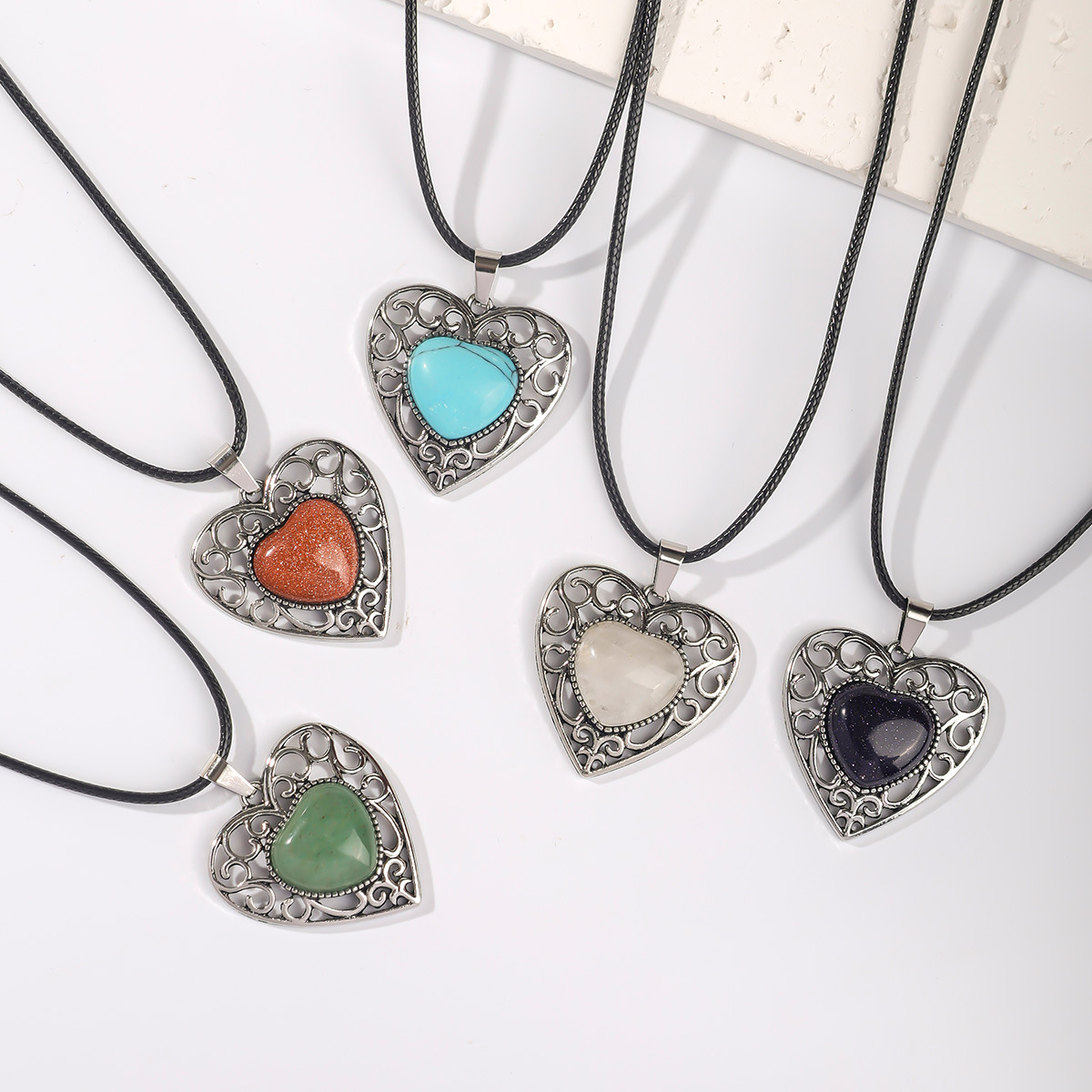 Collier bijoux de pierre gemme, avec cordon en cuir & alliage de zinc, différents matériaux pour le choix & unisexe & creux, Vendu par PC