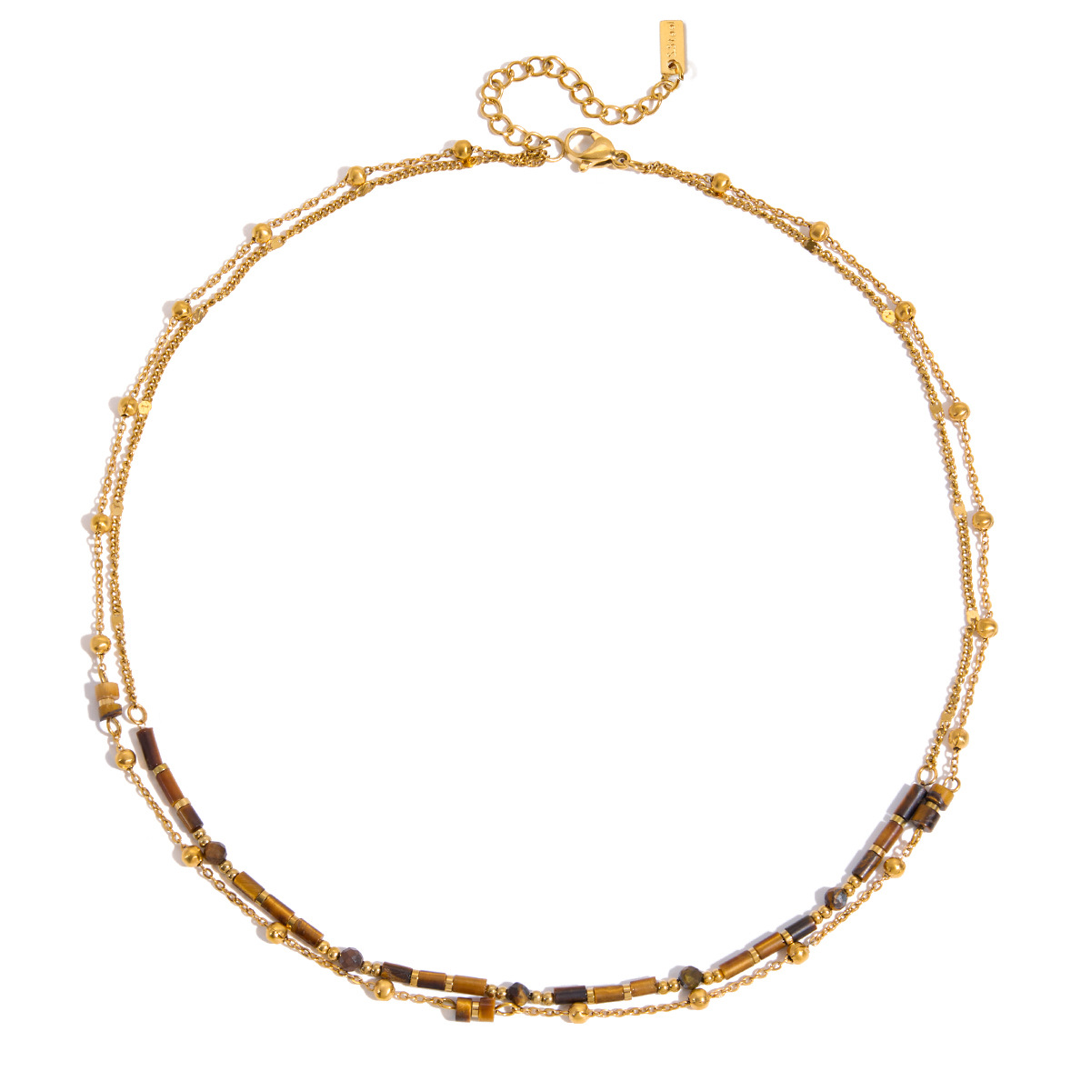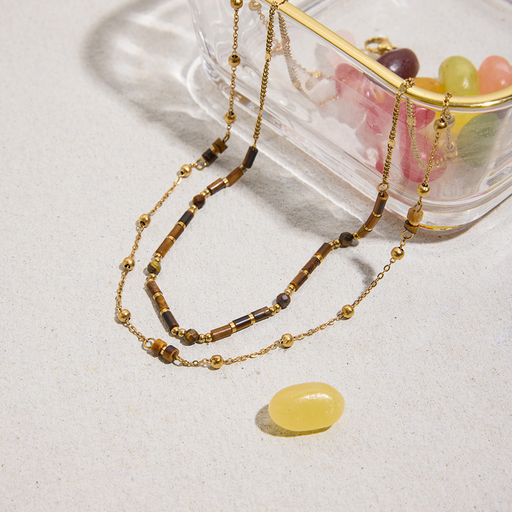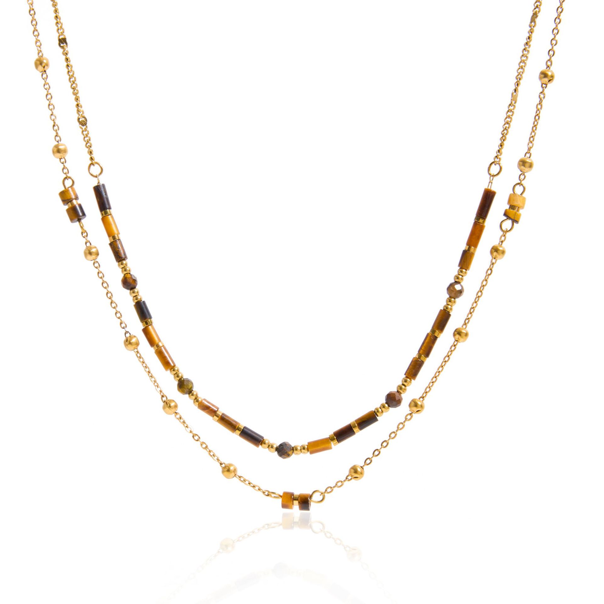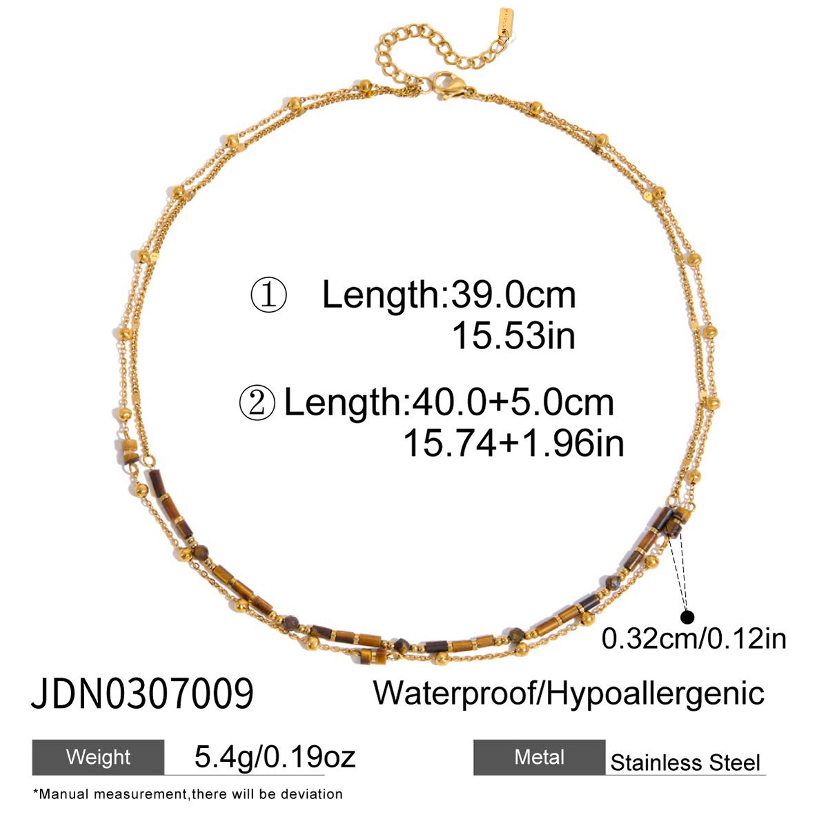 Collier bijoux de pierre gemme, Acier inoxydable 304, avec oeil de tigre, Placage, Double couche & bijoux de mode & pour femme, doré, Vendu par PC
