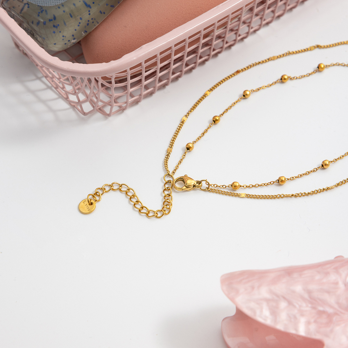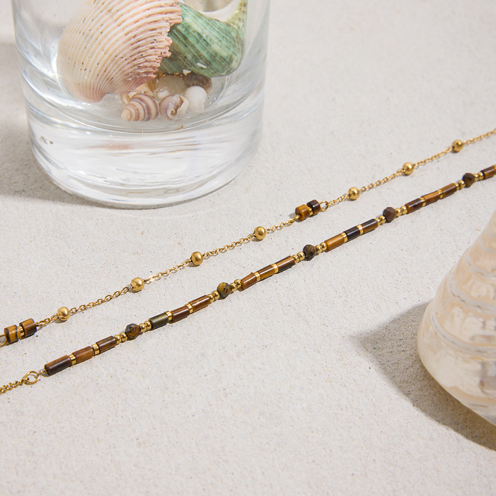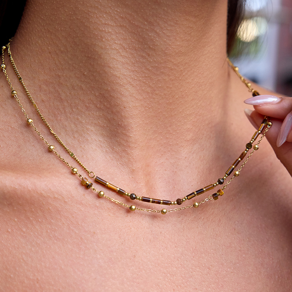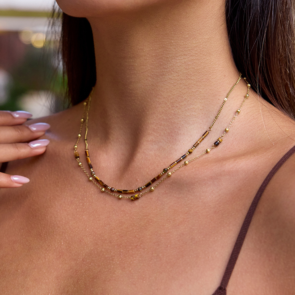 Collier bijoux de pierre gemme, Acier inoxydable 304, avec oeil de tigre, Placage, Double couche & bijoux de mode & pour femme, doré, Vendu par PC