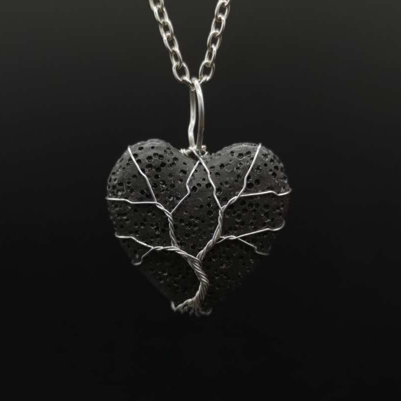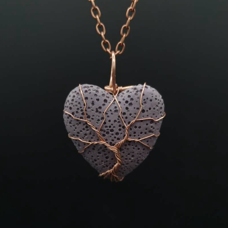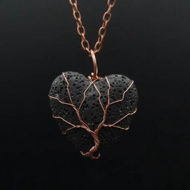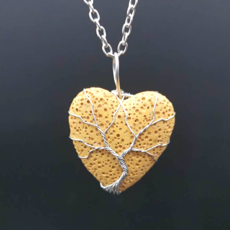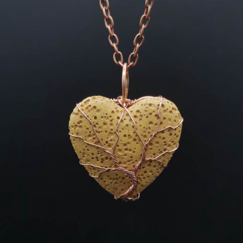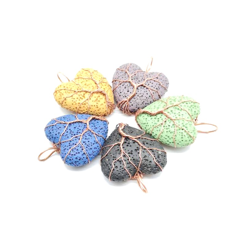 Collier bijoux de pierre gemme, lave volcanique, avec fil en laiton & chaîne de fer, Placage, bijoux de mode & pour femme, plus de couleurs à choisir, Pendant :4x3cm, Longueur Environ 53 cm, Vendu par PC