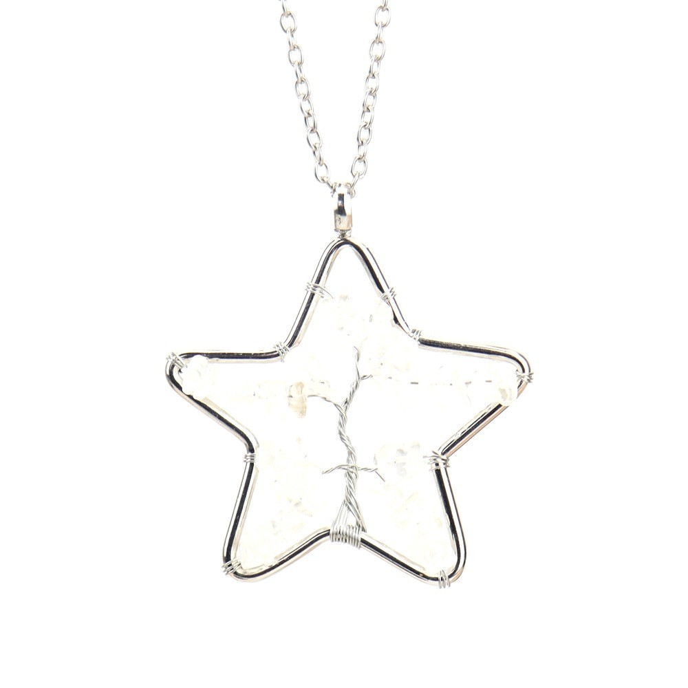 Collier bijoux de pierre gemme, avec chaîne de fer & laiton, fait à la main, différents matériaux pour le choix & pour femme & creux, argent, Pendant :5cm, Longueur Environ 53 cm, Vendu par PC