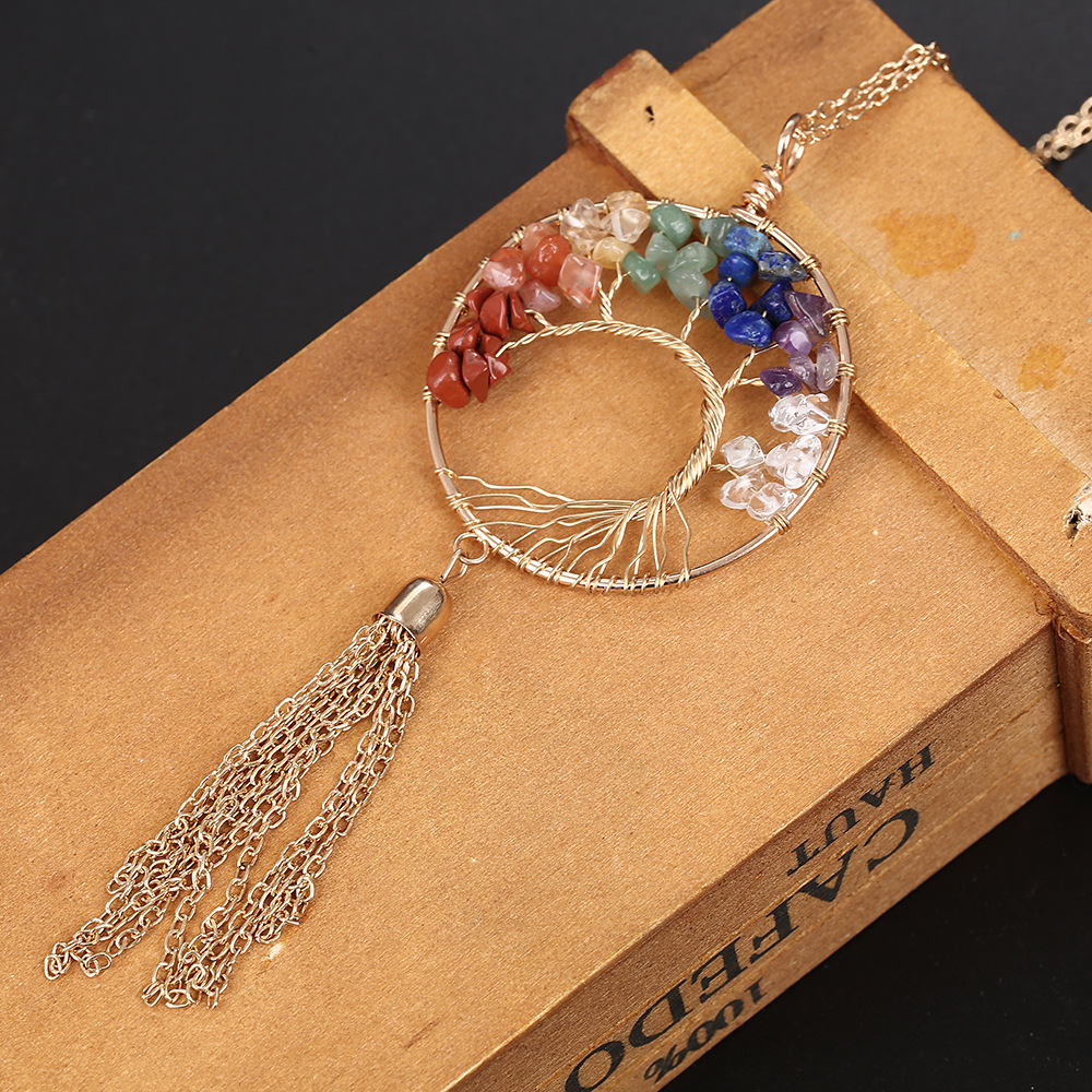 Collier bijoux de pierre gemme, avec chaîne de fer & laiton, Placage, fait à la main & différents matériaux pour le choix & pour femme & creux, plus de couleurs à choisir, Longueur Environ 53 cm, Vendu par PC