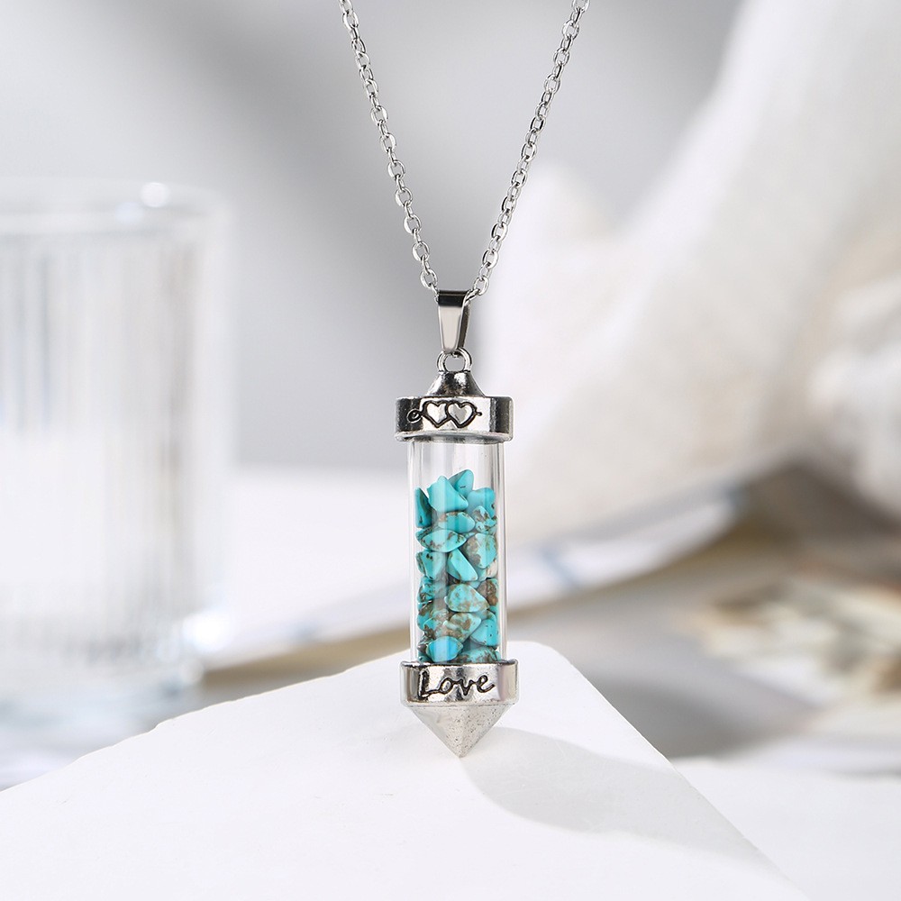 Collier bijoux de pierre gemme, Gravier naturel, avec verre & Acier inoxydable 304, Placage de couleur argentée, bijoux de mode & différents matériaux pour le choix & unisexe, Vendu par PC