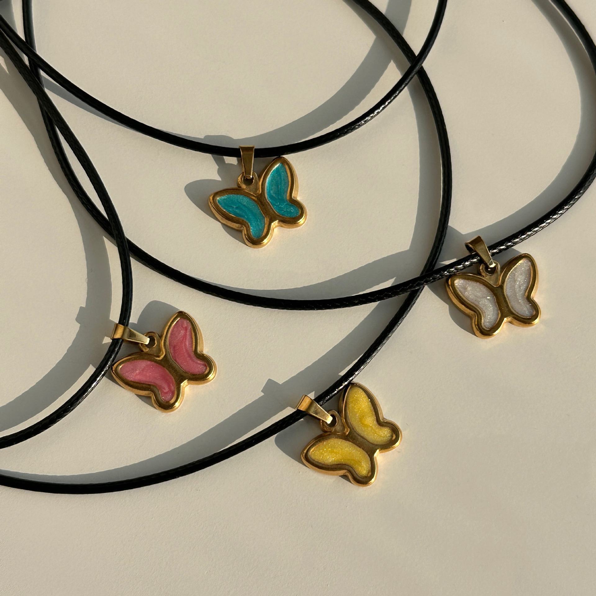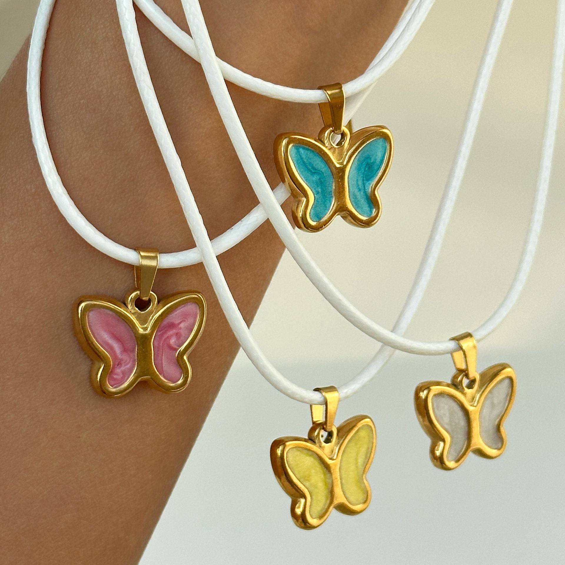 Collier d'acier titane, papillon, pour femme & émail, plus de couleurs à choisir, Longueur 21-50 cm, Vendu par PC