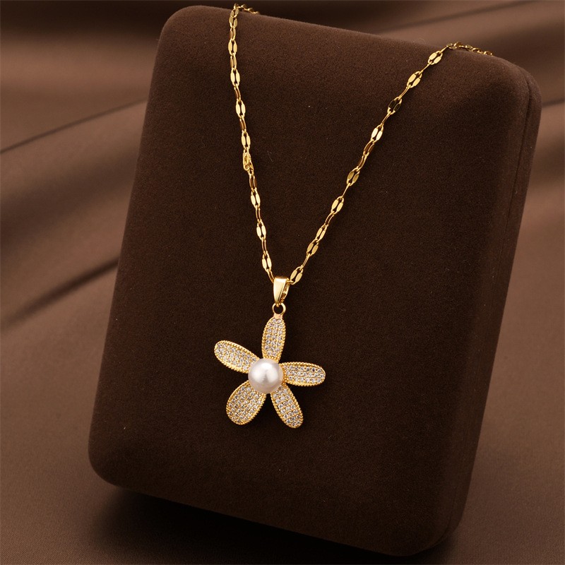 Collier d'acier titane, avec Plastique ABS perle & zircon cubique, Placage, bijoux de mode & pour femme, plus de couleurs à choisir, Longueur Environ 41 cm, Vendu par PC