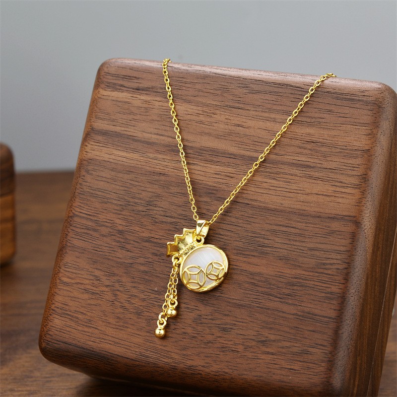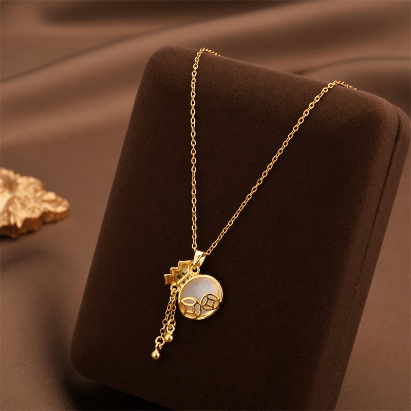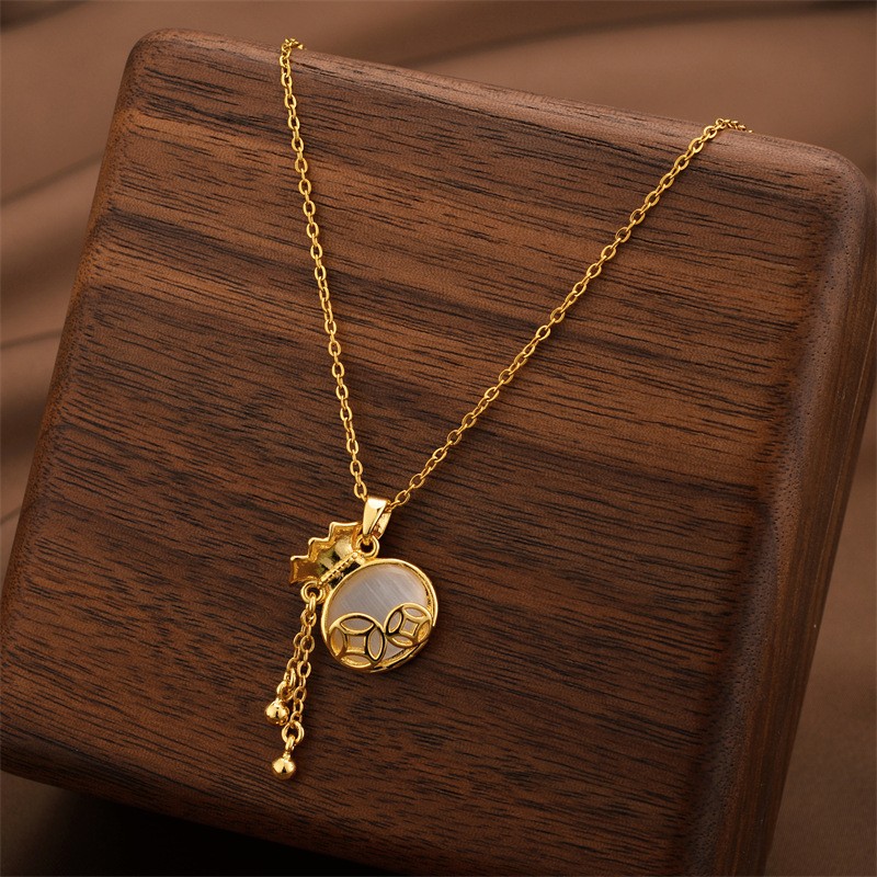 Collier d'acier titane, avec Oeil de chat, Placage, bijoux de mode & pour femme, doré, Longueur Environ 41 cm, Vendu par PC