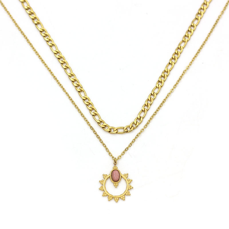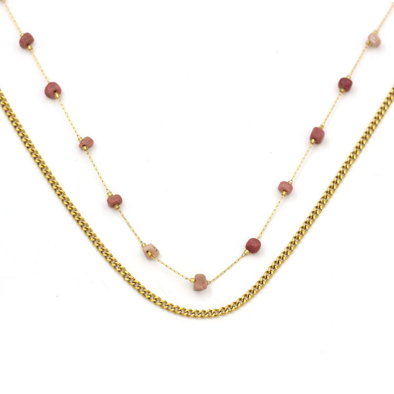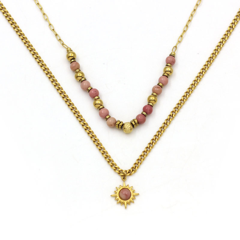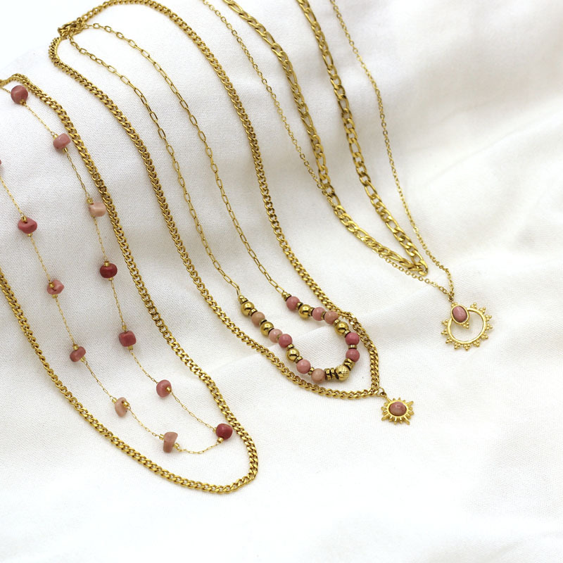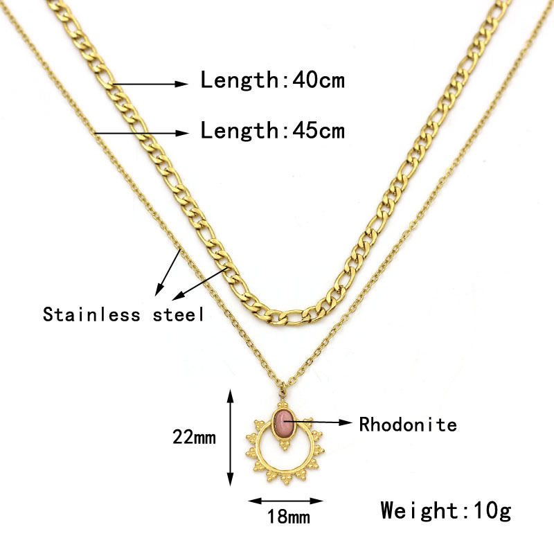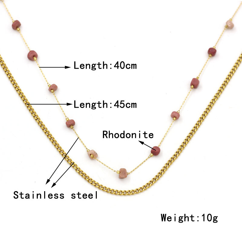 Collier de bijoux en acier inoxydable, Acier inoxydable 304, avec rhodonite, Placage de couleur d'or, bijoux de mode, plus de couleurs à choisir, Vendu par PC
