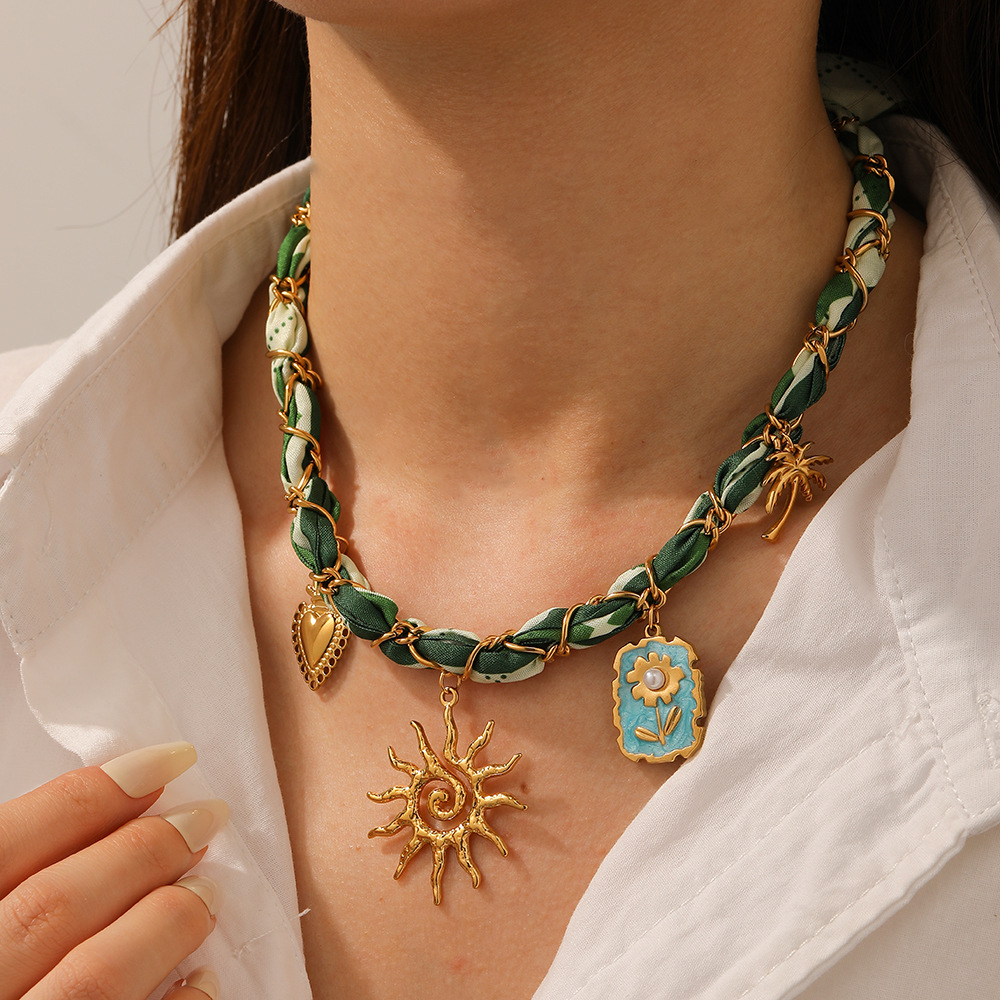 Collier de bijoux en acier inoxydable, Acier inoxydable 304, avec coton & perle de plastique, Placage de couleur d'or, bijoux de mode & pour femme & émail, Vendu par PC