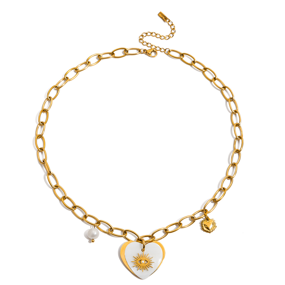 Collier de bijoux en acier inoxydable, Acier inoxydable 304, avec coquille blanche & verre & perle de plastique, Placage de couleur d'or, bijoux de mode & avec strass, plus de couleurs à choisir, Vendu par PC
