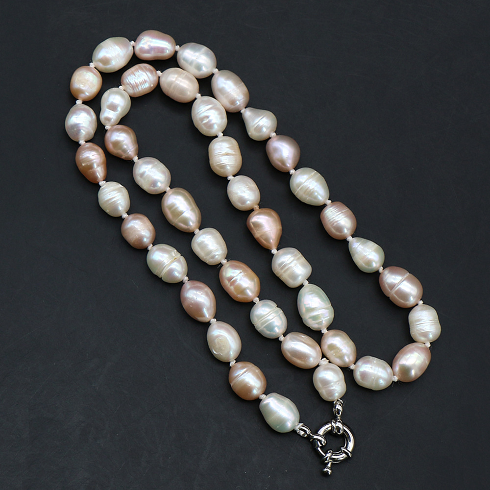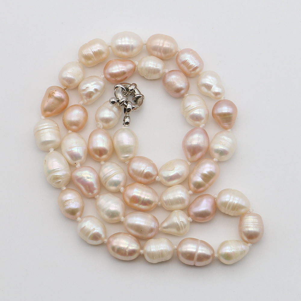 Collier de chaîne en laiton de perles d'eau douce, perle d'eau douce cultivée, avec laiton, bijoux de mode, couleurs mélangées, 7-8mm, Longueur 44 cm, Vendu par PC