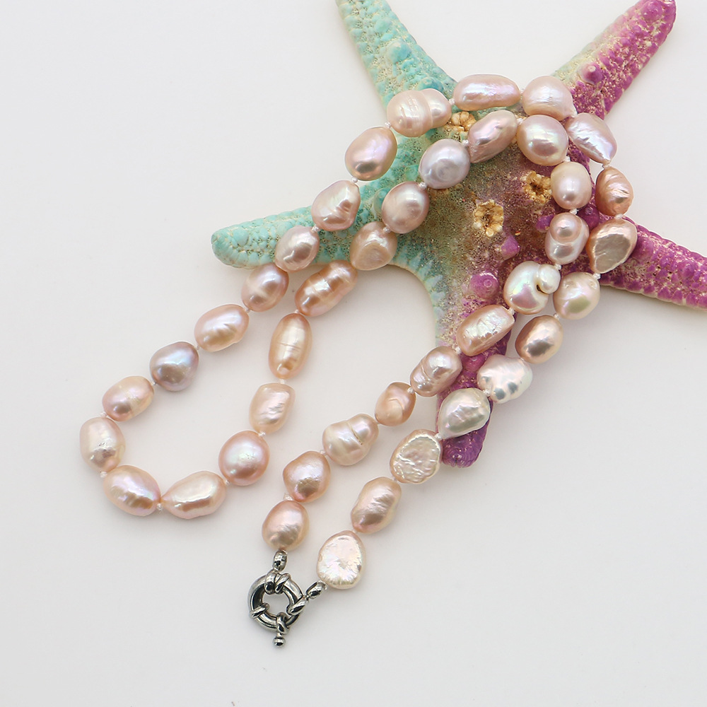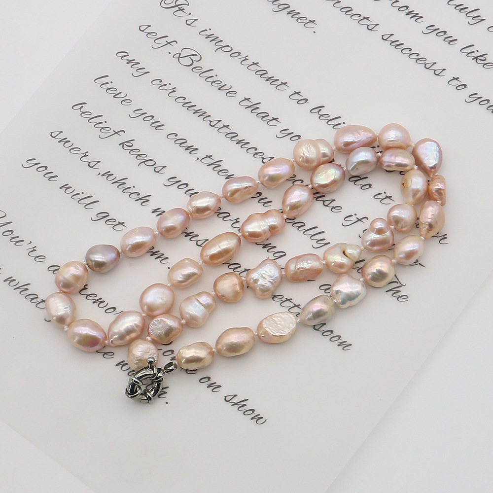Collier de chaîne en laiton de perles d'eau douce, perle d'eau douce cultivée, avec laiton, bijoux de mode, couleurs mélangées, 9-10mm, Longueur 47 cm, Vendu par PC