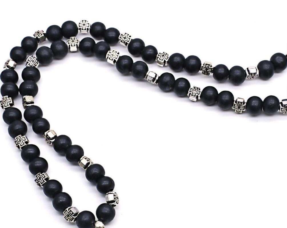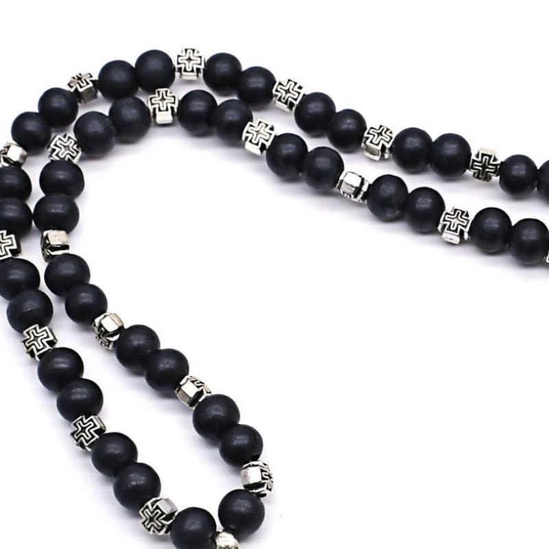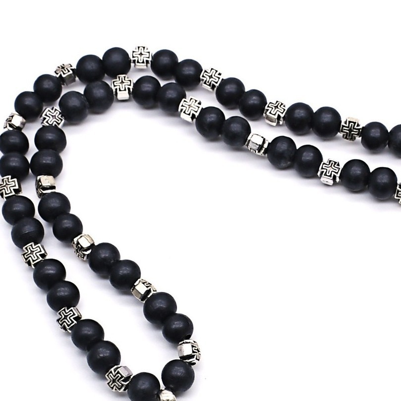 Collier de chapelet, alliage de zinc, avec bois, croix, Placage, bijoux de mode, couleurs mélangées, 8mm, Longueur 52 cm, Vendu par PC