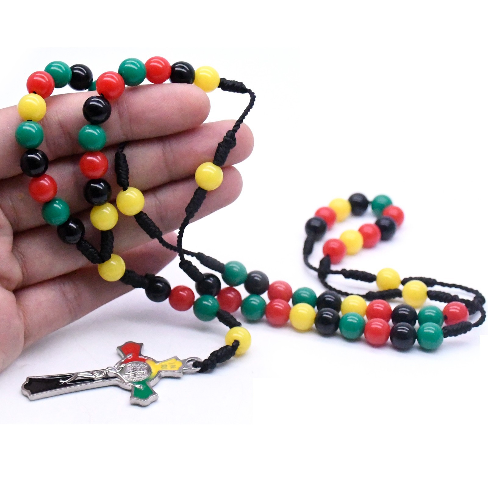 Collier de chapelet, alliage de zinc, avec corde de cire & plastique, croix, Placage de couleur argentée, bijoux de mode, couleurs mélangées, 8mm, Longueur 49 cm, Vendu par PC
