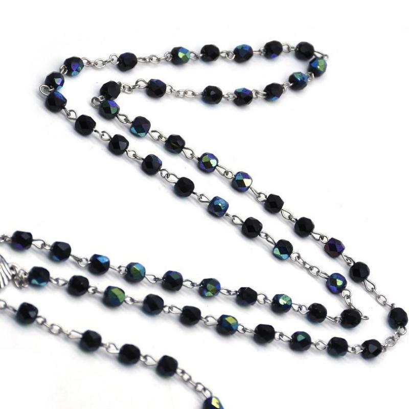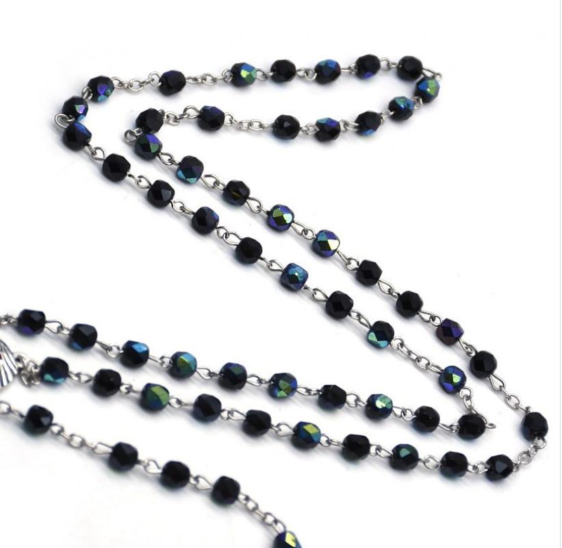 Collier de chapelet, alliage de zinc, avec cristal, croix, Placage, bijoux de mode & émail, plus de couleurs à choisir, 6mm, Longueur 51.5 cm, Vendu par PC